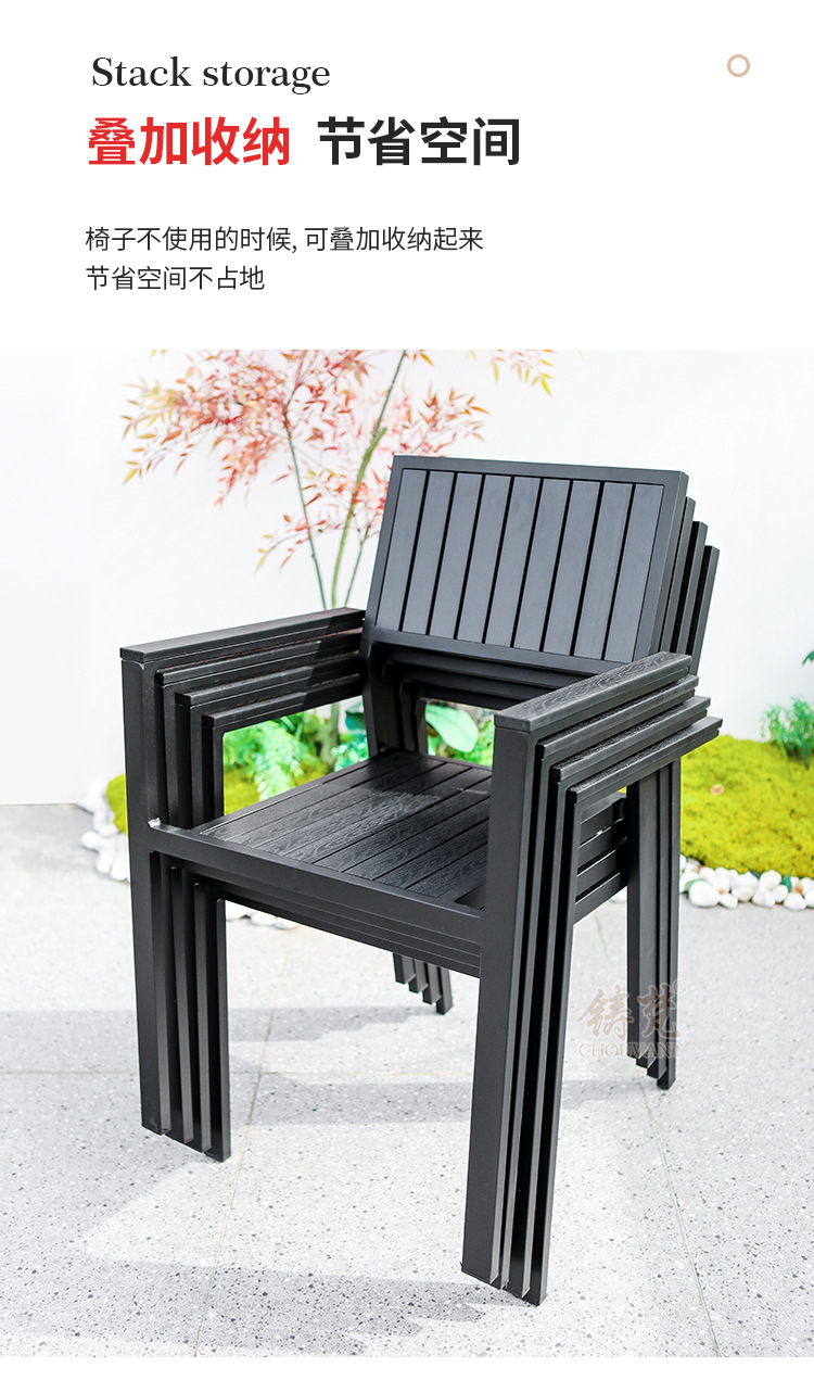 야외 플라스틱 목재 타일 테이블과 의자 안뜰 야외 레저 식탁 정원 야외 발코니 카페 테이블과 의자 조합스토어 가기