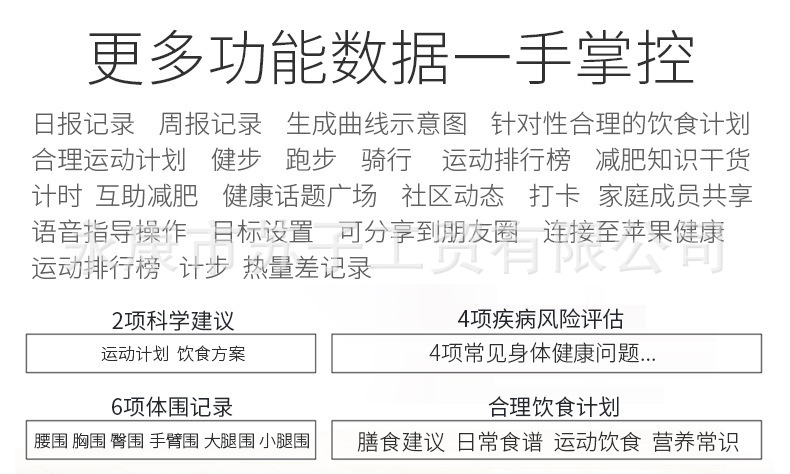 • 블랙 허리 라인 배터리 체지방 측정기 블루투스