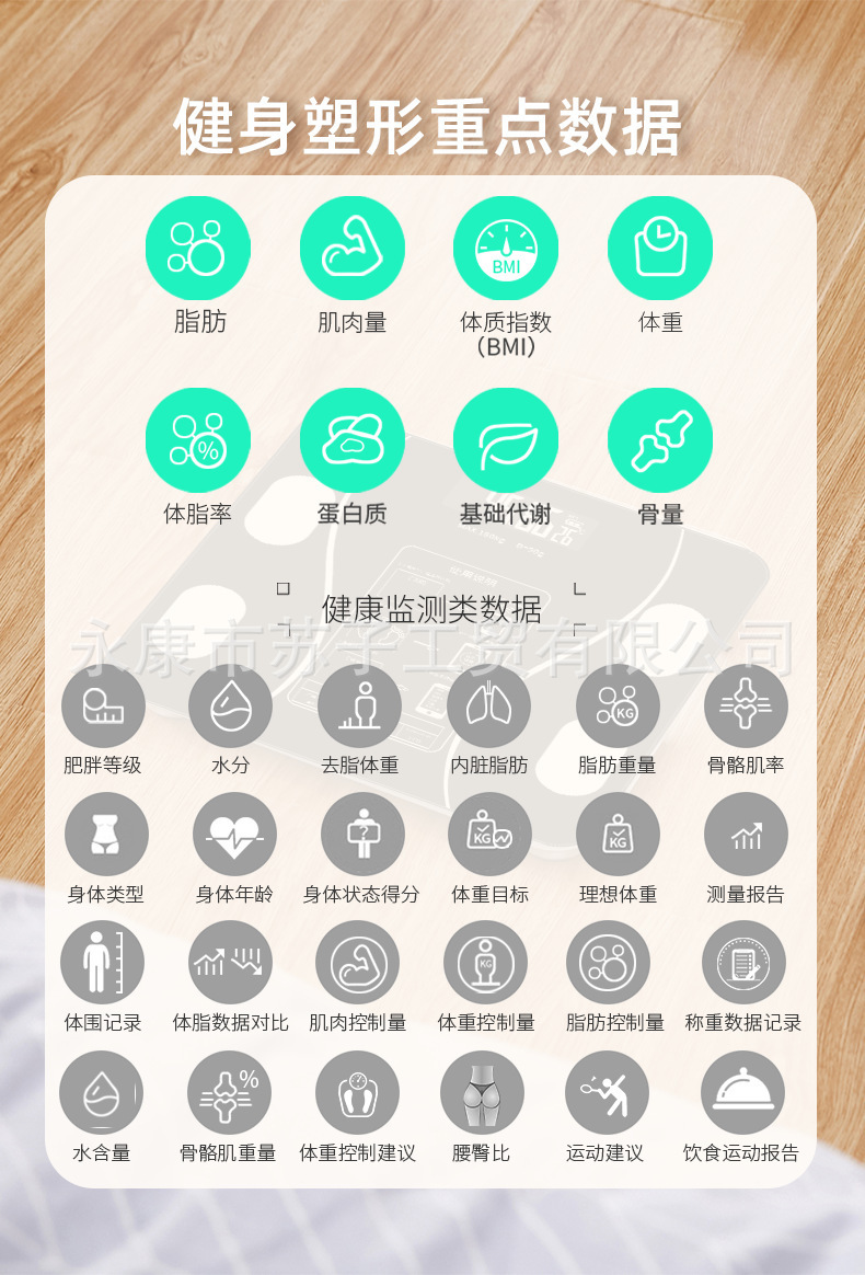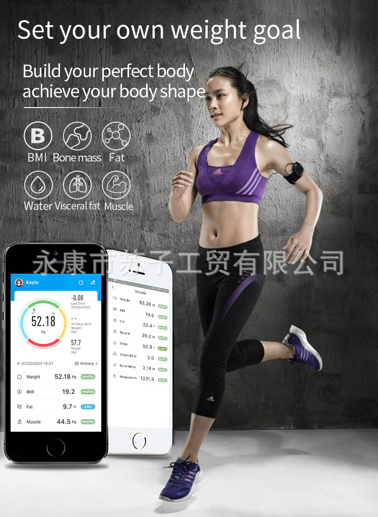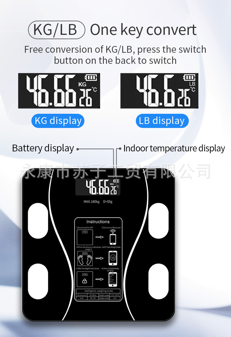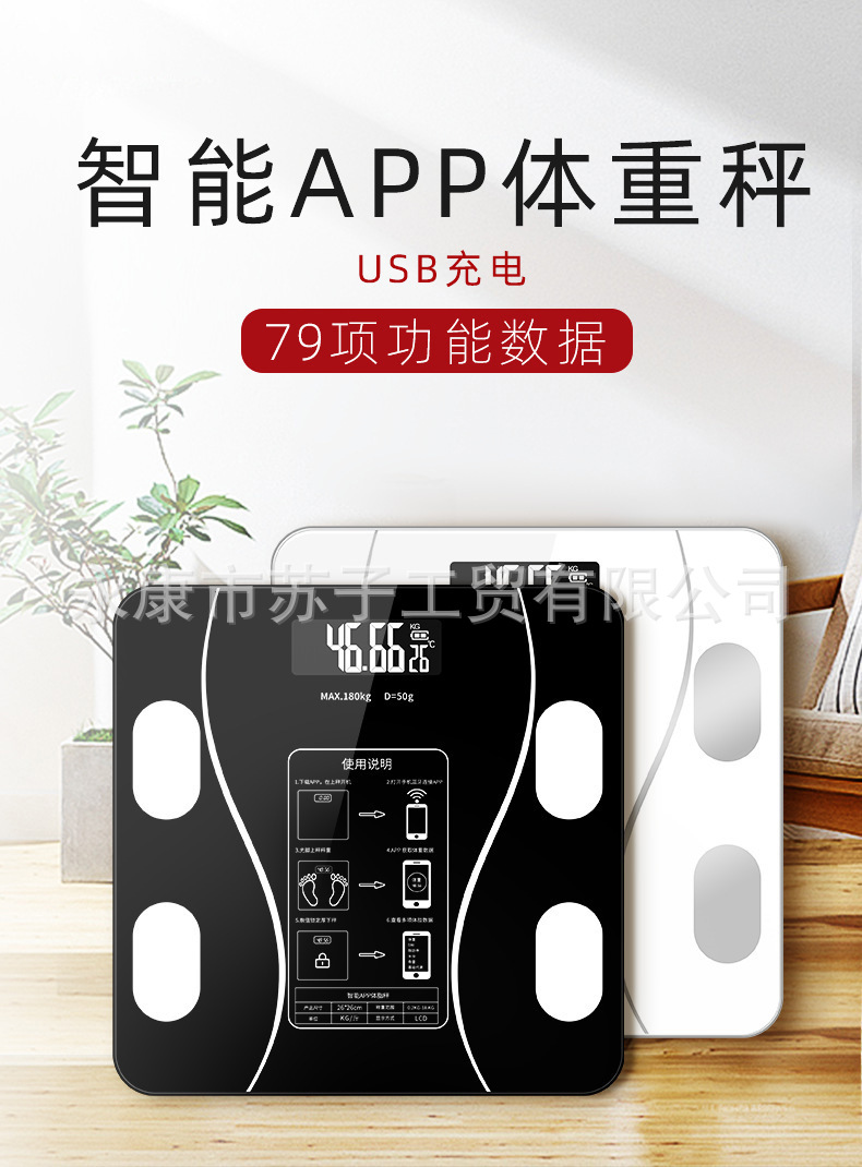 충전식 블루투스 스마트 전자 체중계 체중계 체지방 측정기 가정용 체중계 도매 국경 간 선물 건강스토어 가기