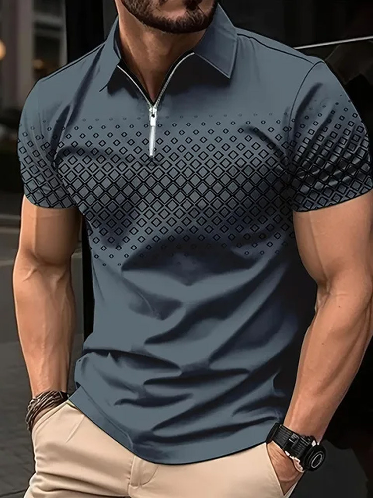 여름 남성 반팔 폴로 셔츠 패션 3D 티셔츠 지퍼 골프 셔츠 캐주얼 스트리트웨어 남성 의류 유럽 스타일 측정