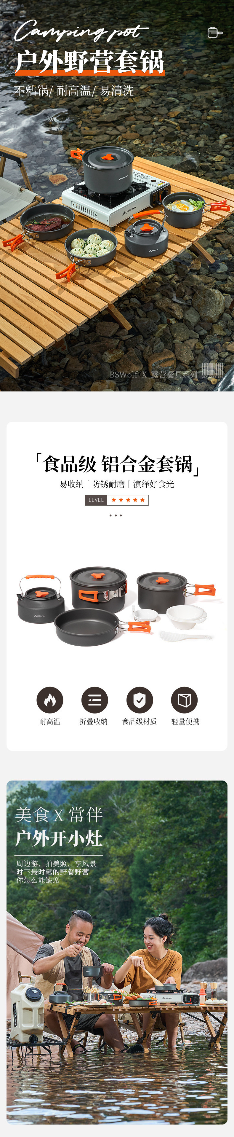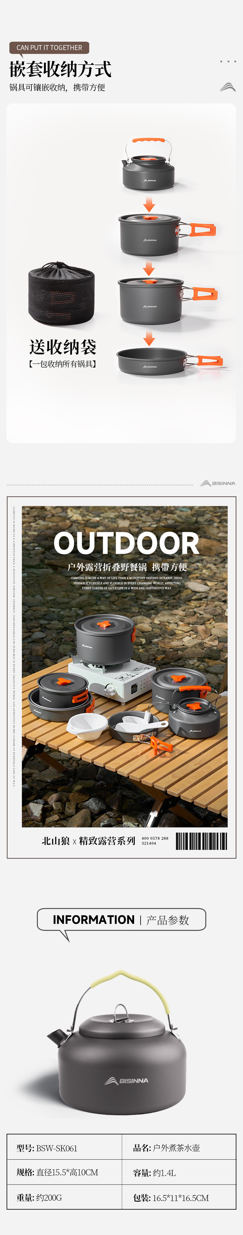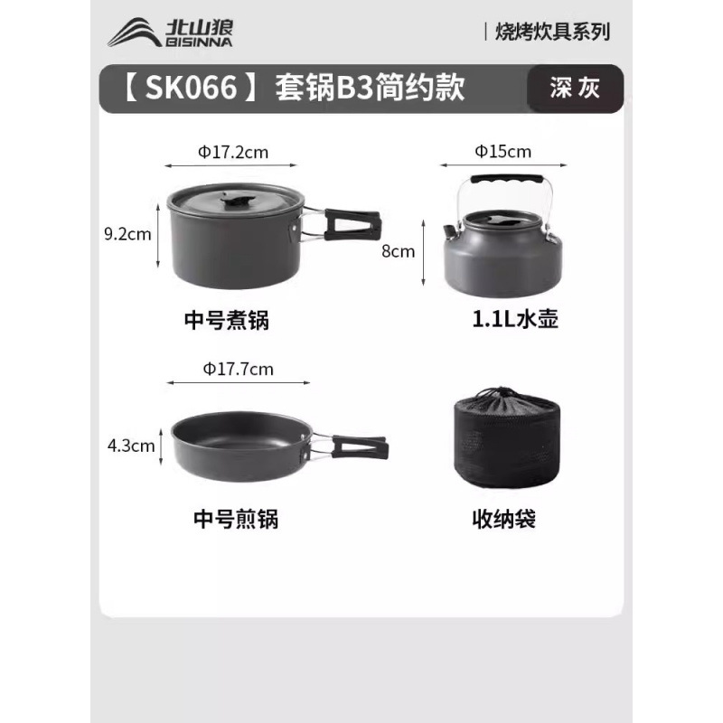 Beishanlang 야외 냄비 세트 캠핑 조리기구 주전자 카세트 스토브 휴대용 장비 야외 식기 캠핑 냄비스토어 가기