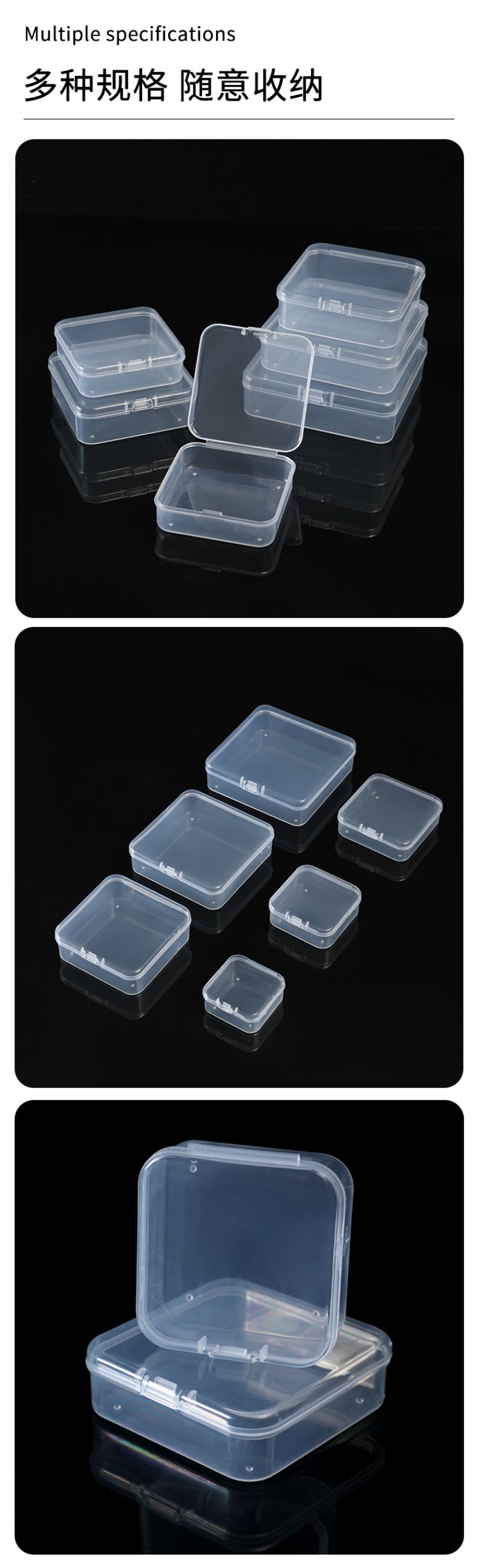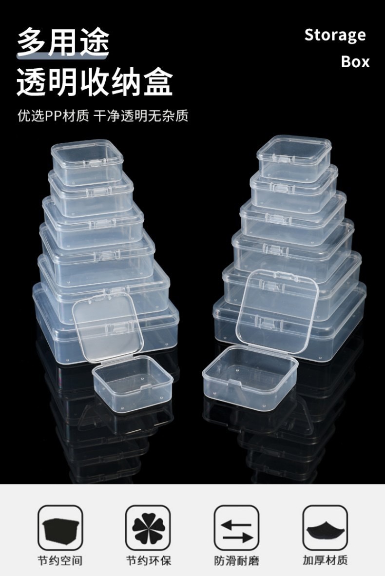 정사각형 상자 정사각형 저장 상자 투명 PP 포장 상자 뚜껑이 있는 작은 재료 상자 보석 부품 플라스틱 상자 포장 상자