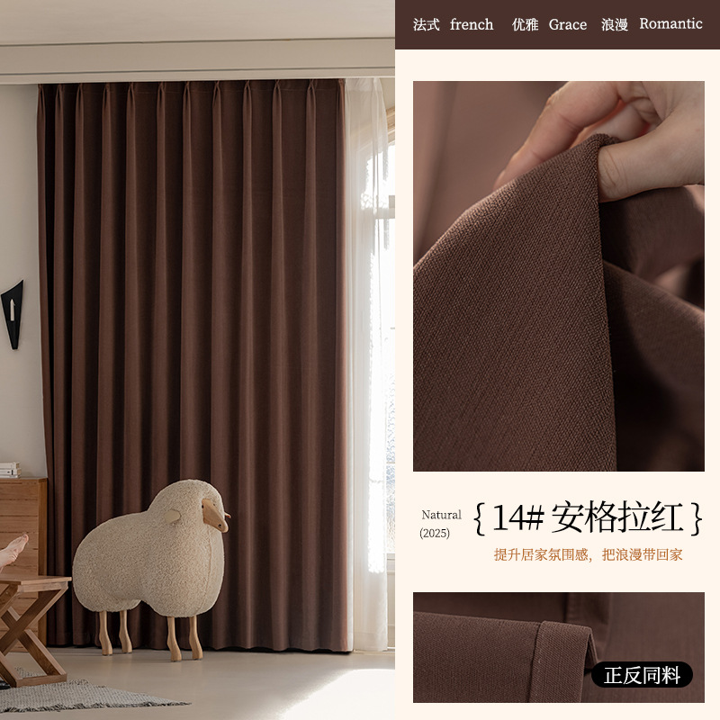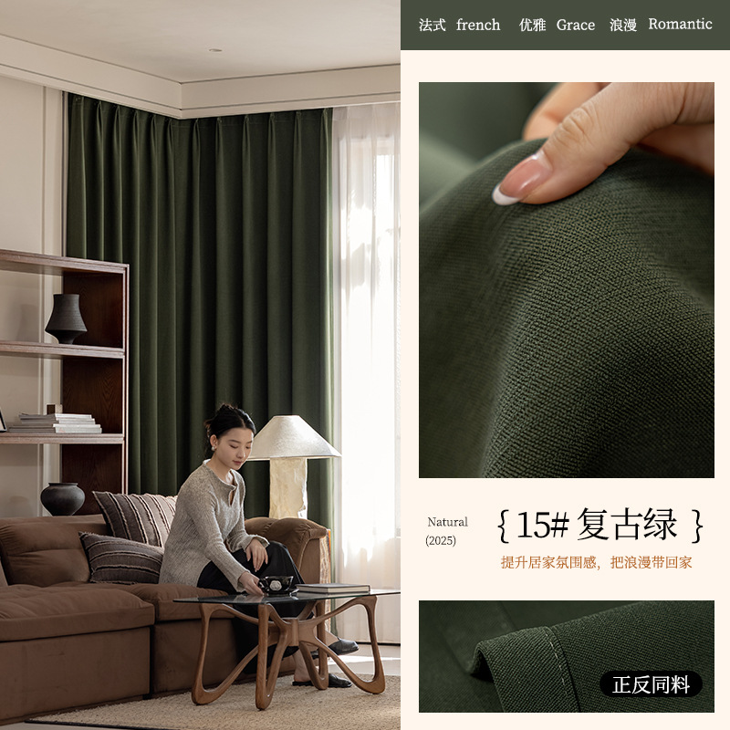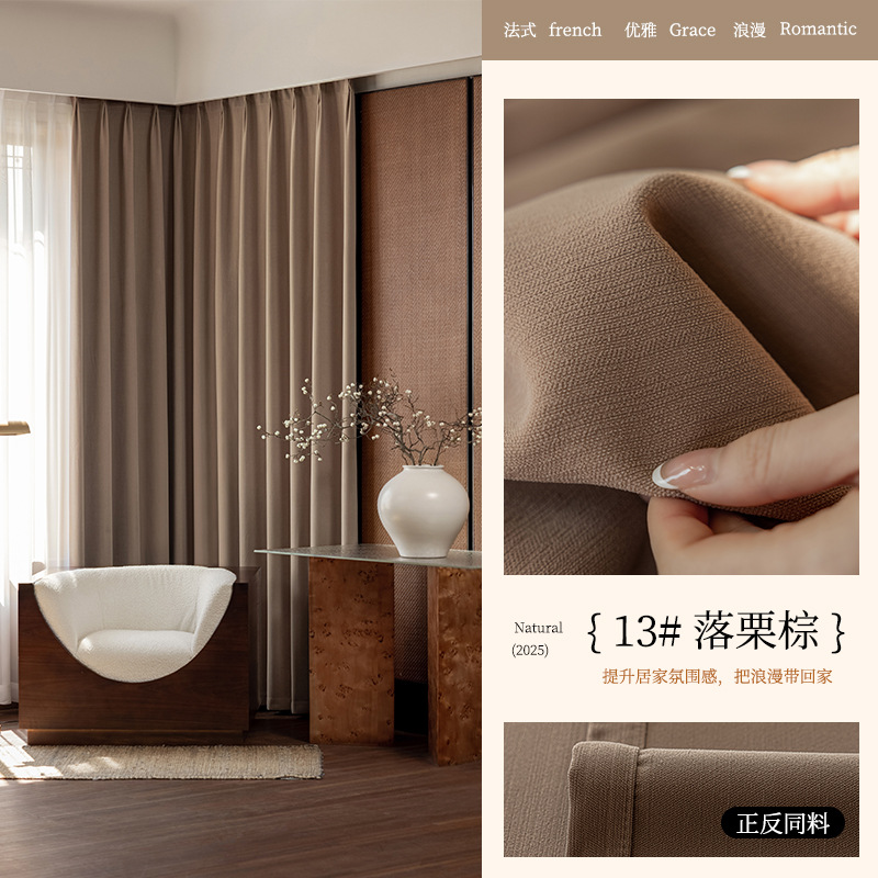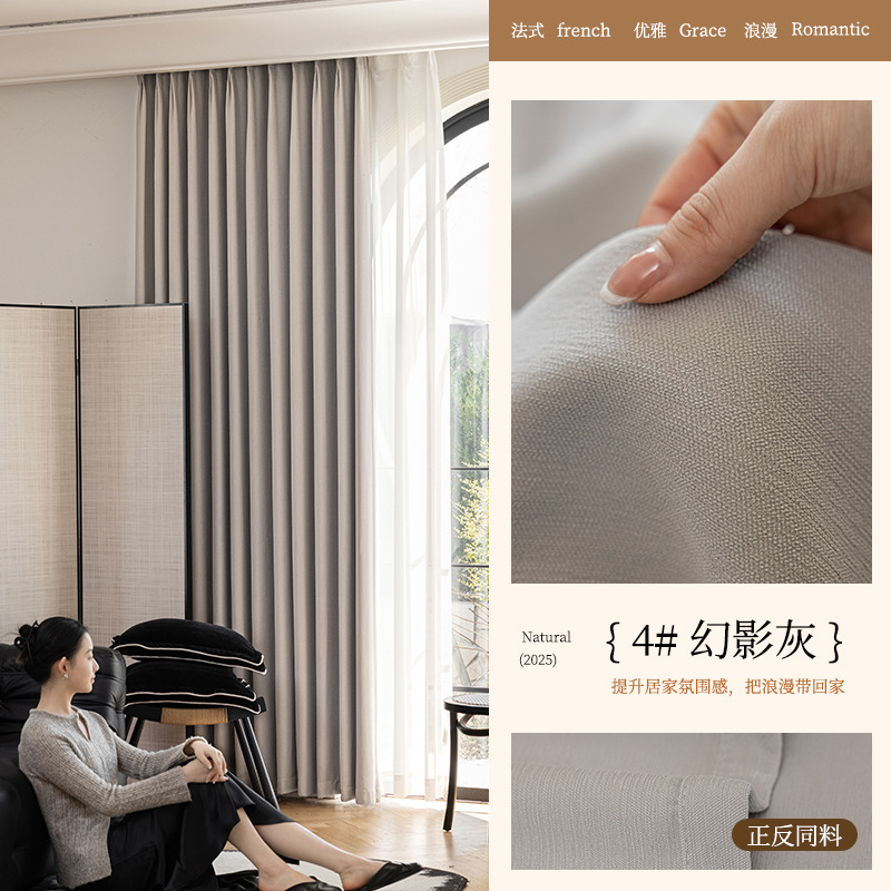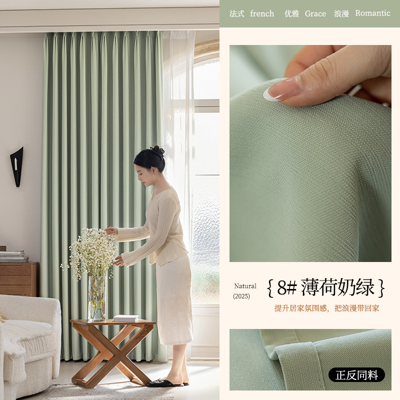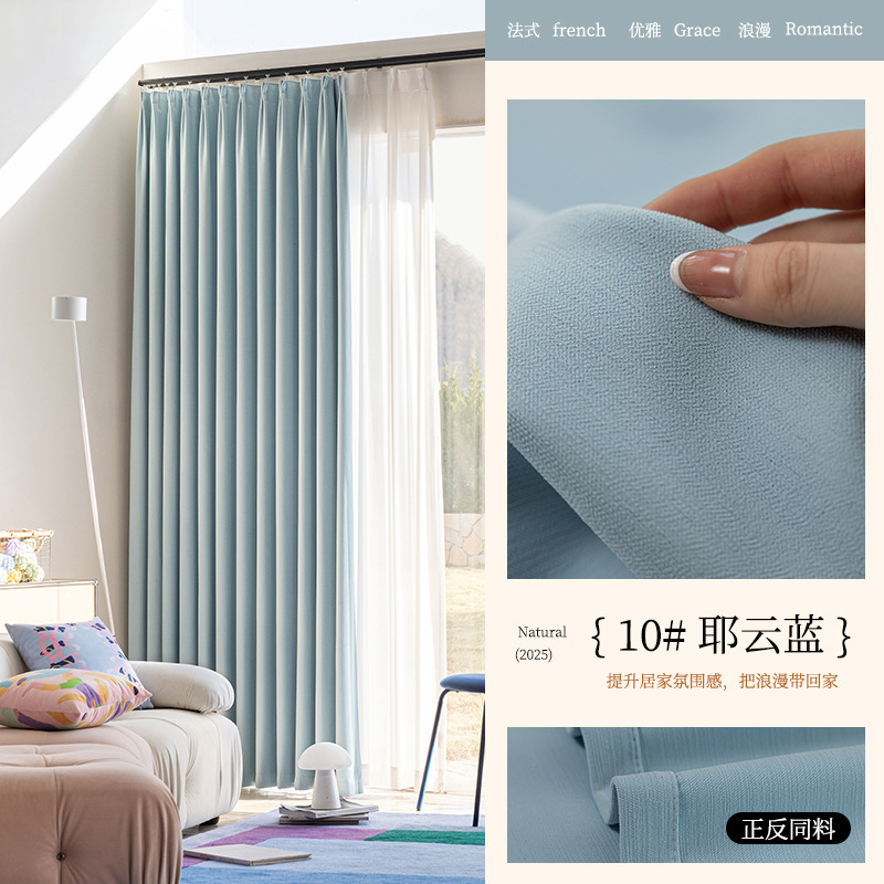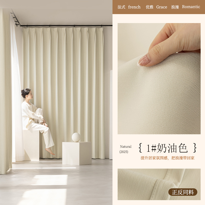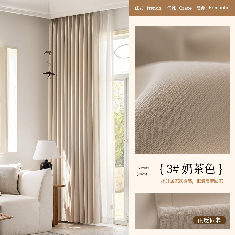 2025년 신형 양면 셔닐 완전 암막 커튼 침실용 고급스러운 초부드러운 구름 크림 스타일 고온 성형스토어 가기