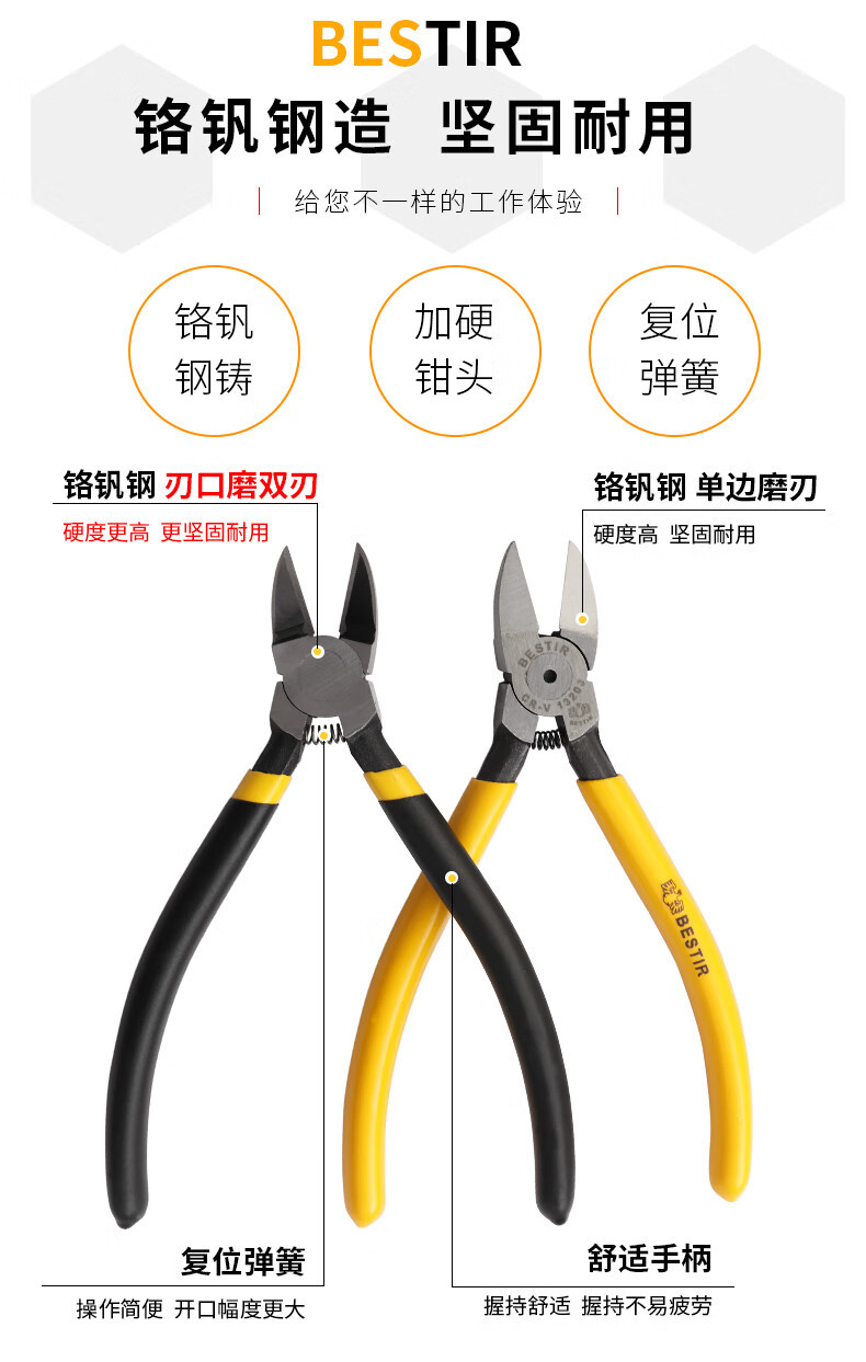 Eagle's Seal 크롬 바나듐 강철 2색 손잡이 노즐 펜치 산업용 등급 얇은 블레이드 대각선 펜치 플라스틱 노즐 커터스토어 가기