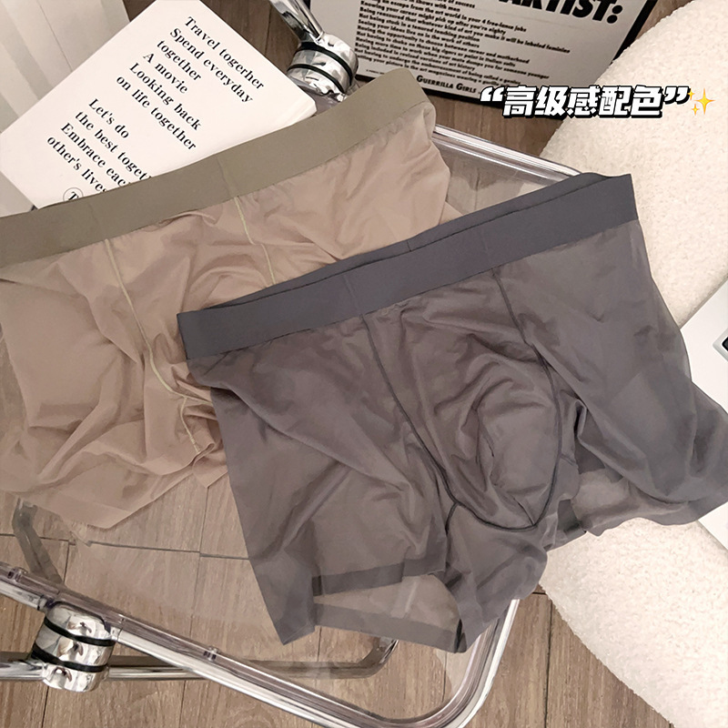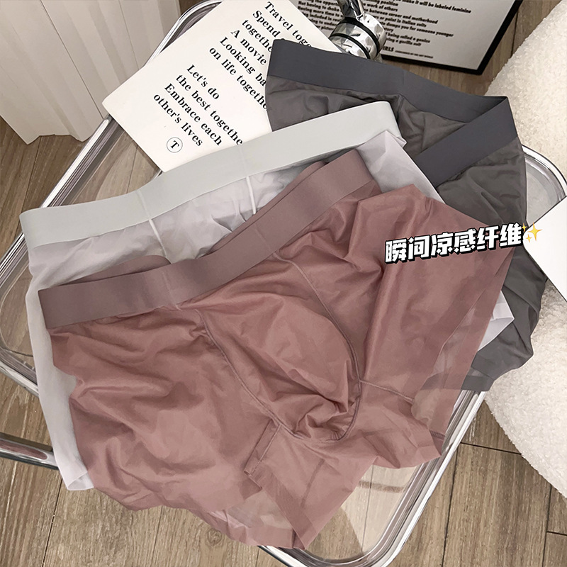 완전 투명 아이스 실크 진공 남성 속옷 얇은 복서 반바지 남성용 추적없는 통기성 복서 반바지 2025 새로운 스타일스토어 가기