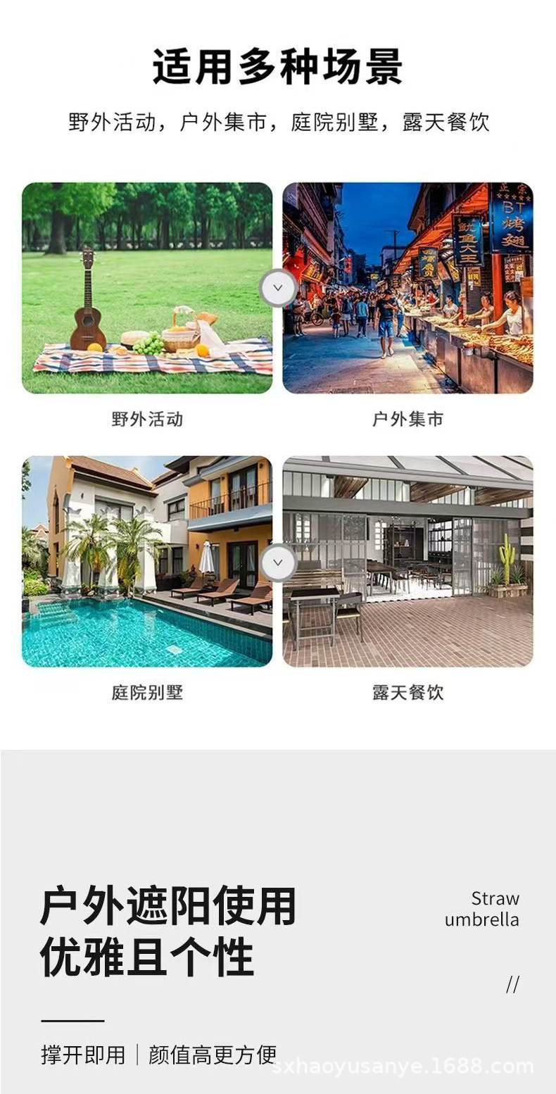 레저용 햇빛 가리개 밀짚우산, 자외선 차단 해변우산, 마당, 농가, 관광지, 정원용, UPF50+ 차양 우산스토어 가기