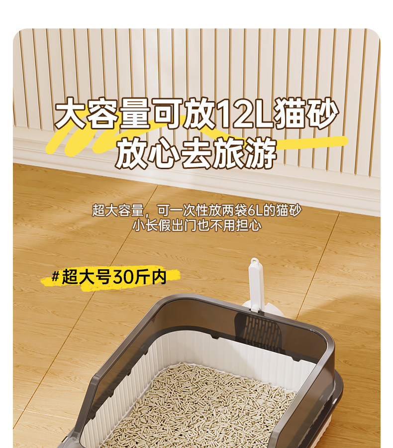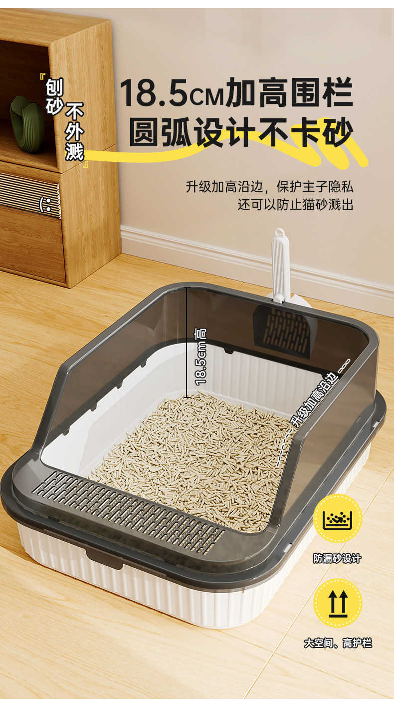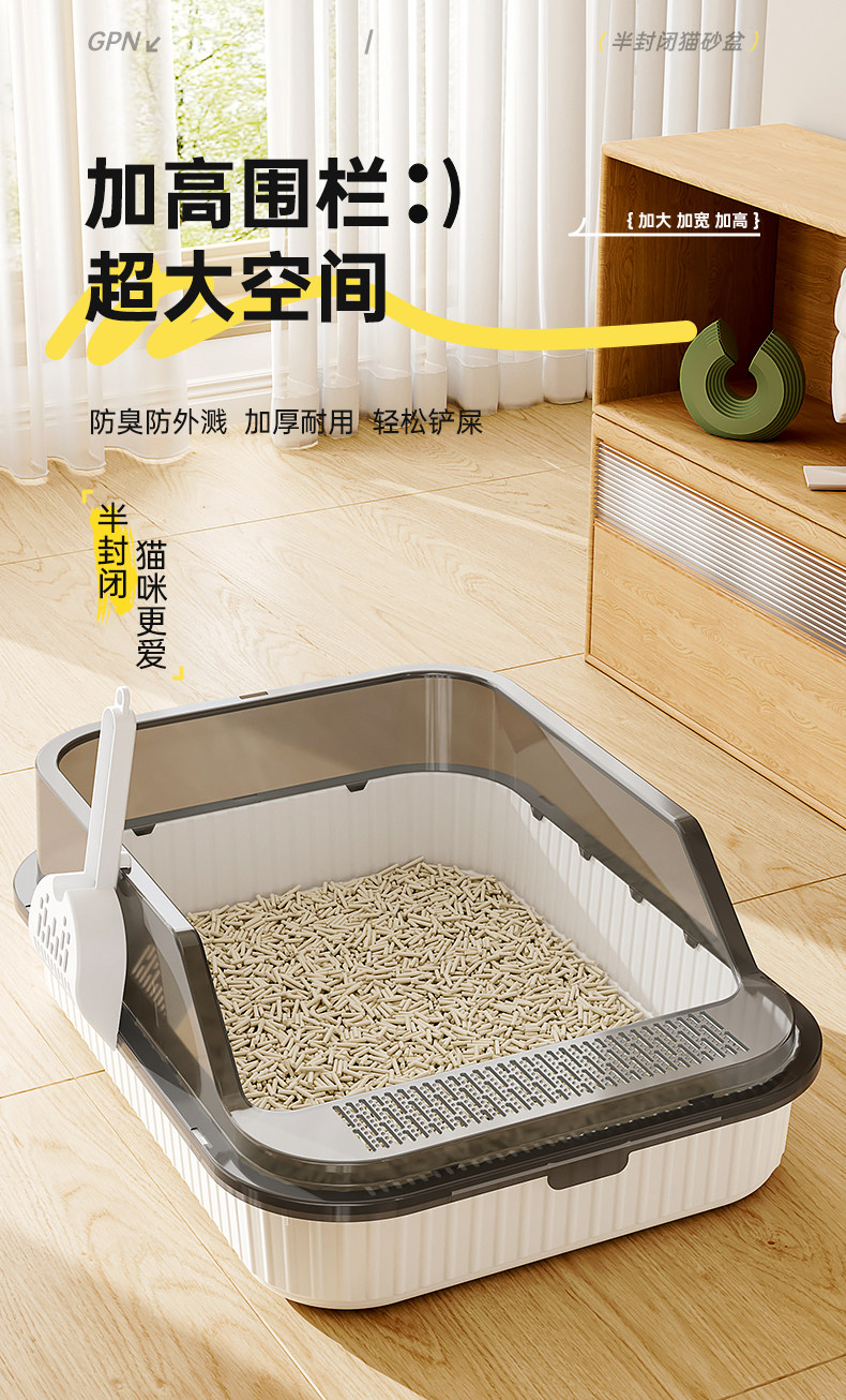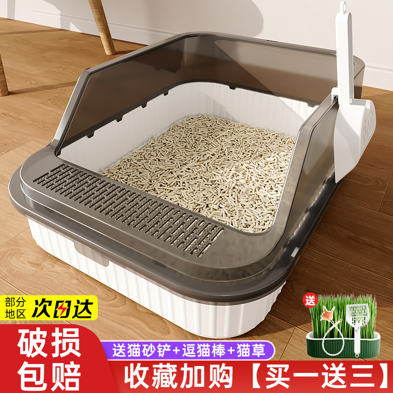 고양이 쓰레기통, 대형, 물 튀김 방지, 대형 고양이 화장실, 고양이 모래 반밀폐형 고양이 쓰레기통, 새끼 고양이 소형스토어 가기