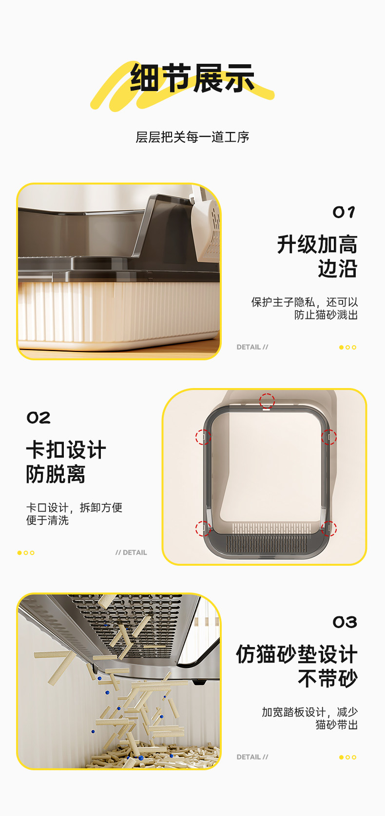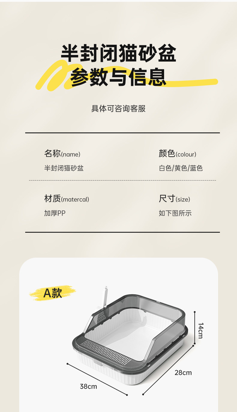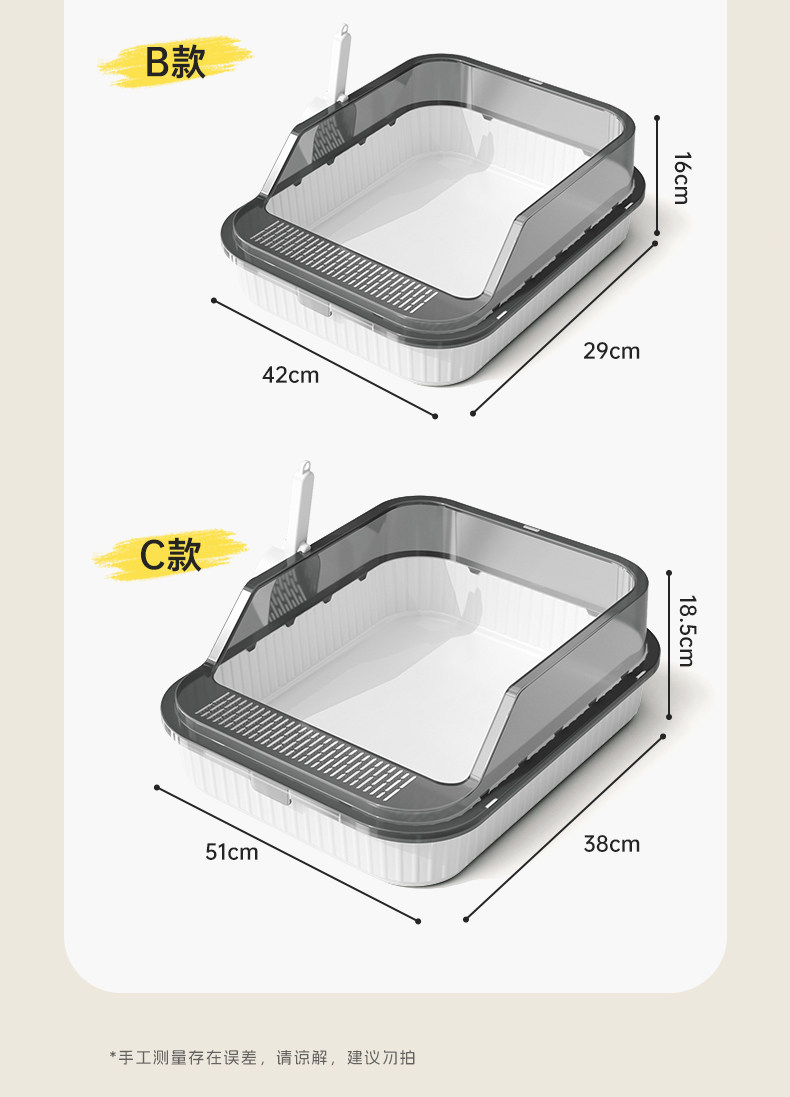 고양이 쓰레기통, 대형, 물 튀김 방지, 대형 고양이 화장실, 고양이 모래 반밀폐형 고양이 쓰레기통, 새끼 고양이 소형스토어 가기