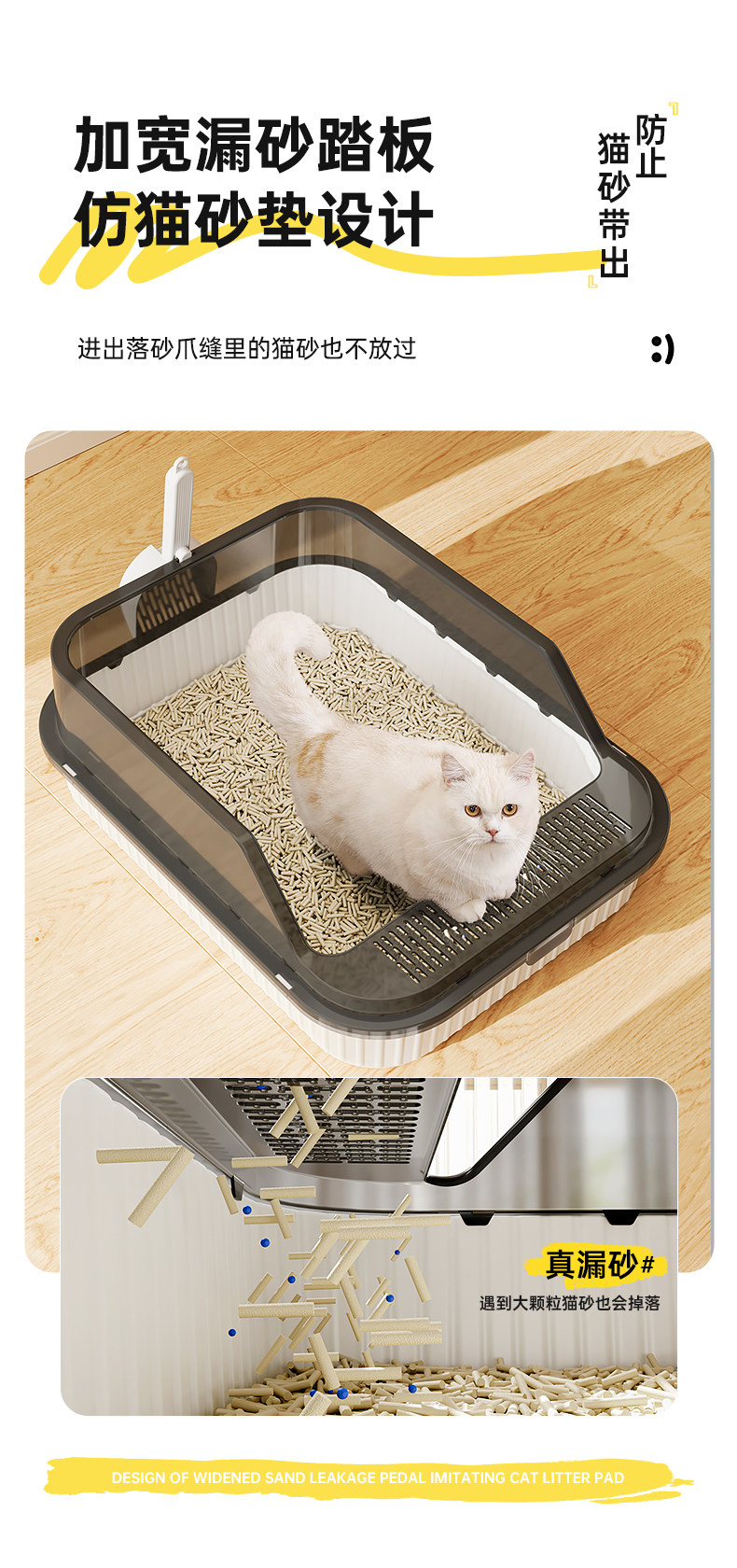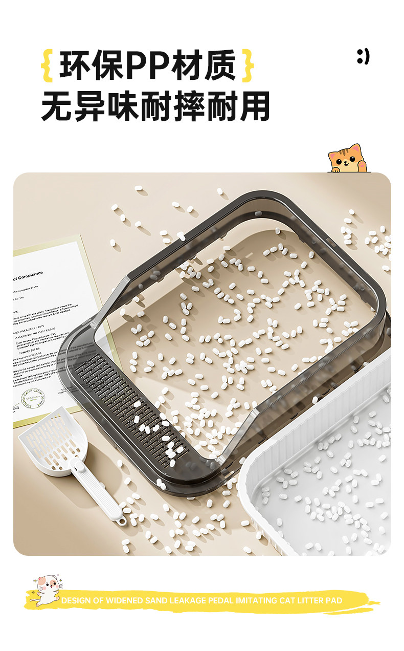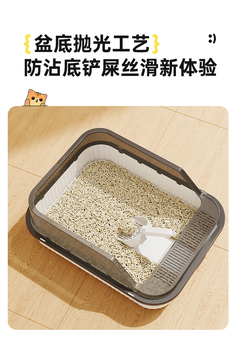 고양이 쓰레기통, 대형, 물 튀김 방지, 대형 고양이 화장실, 고양이 모래 반밀폐형 고양이 쓰레기통, 새끼 고양이 소형