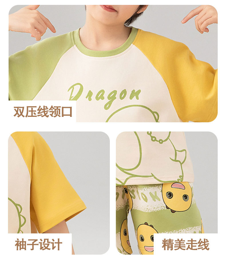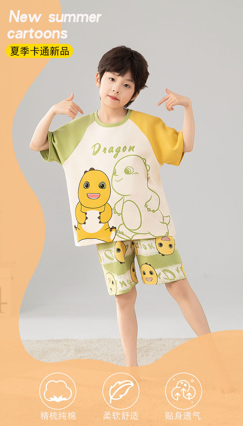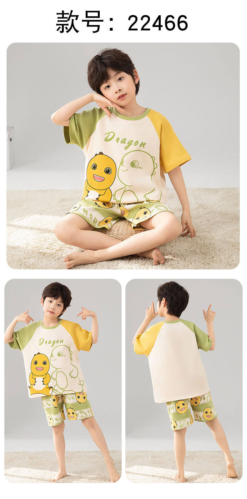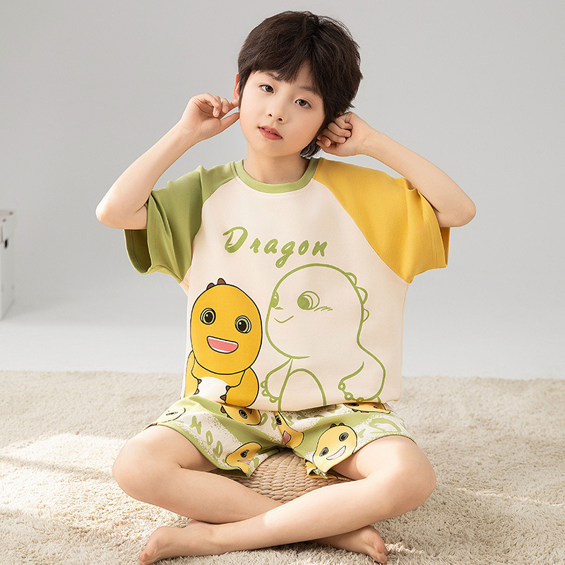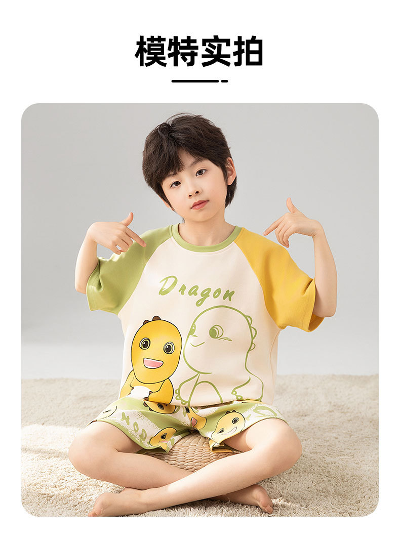 소년 여름 반팔 잠옷 순면 얇은 중대형 어린이 우유 드래곤 어린이 소년 아기 청소년 가정 의류 세트