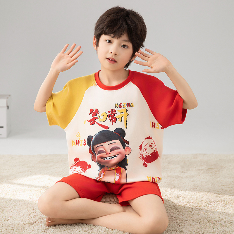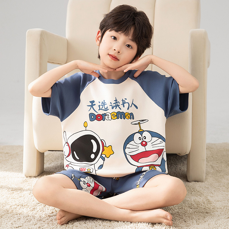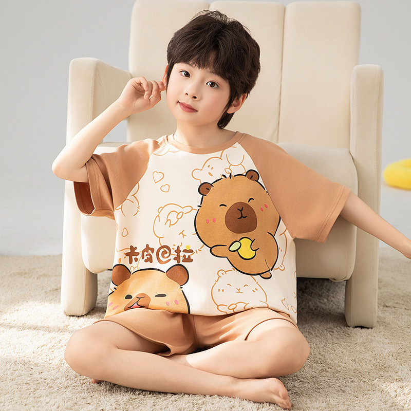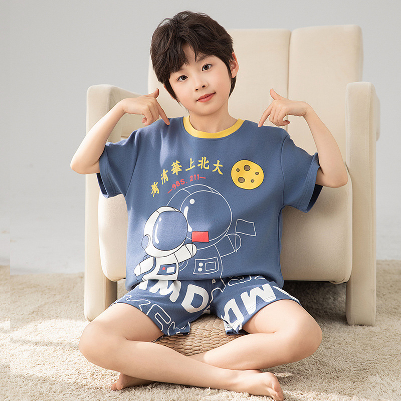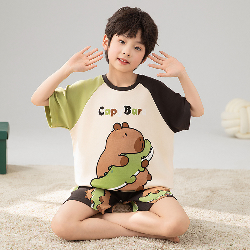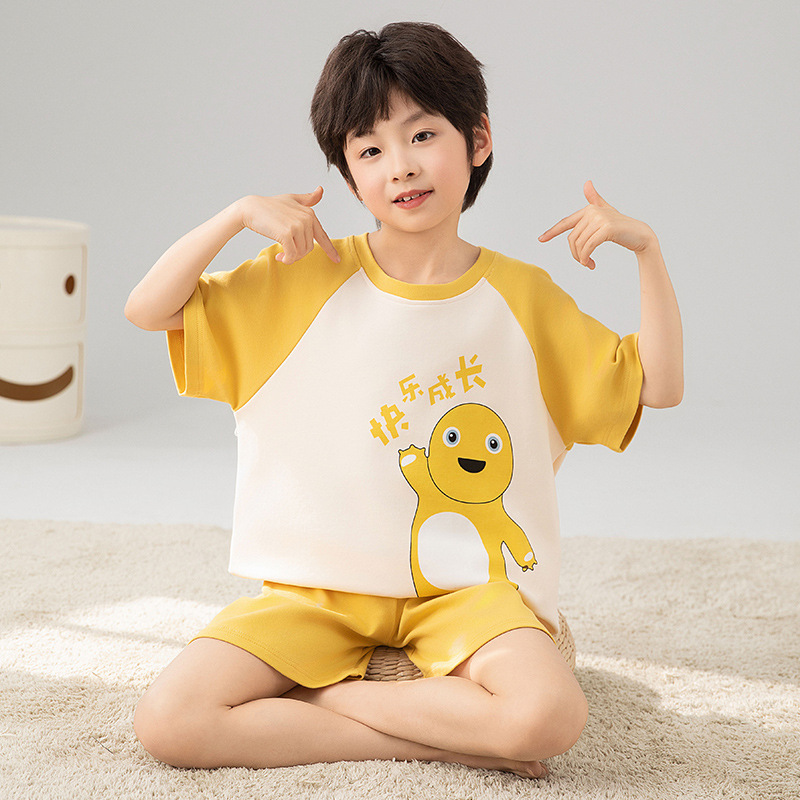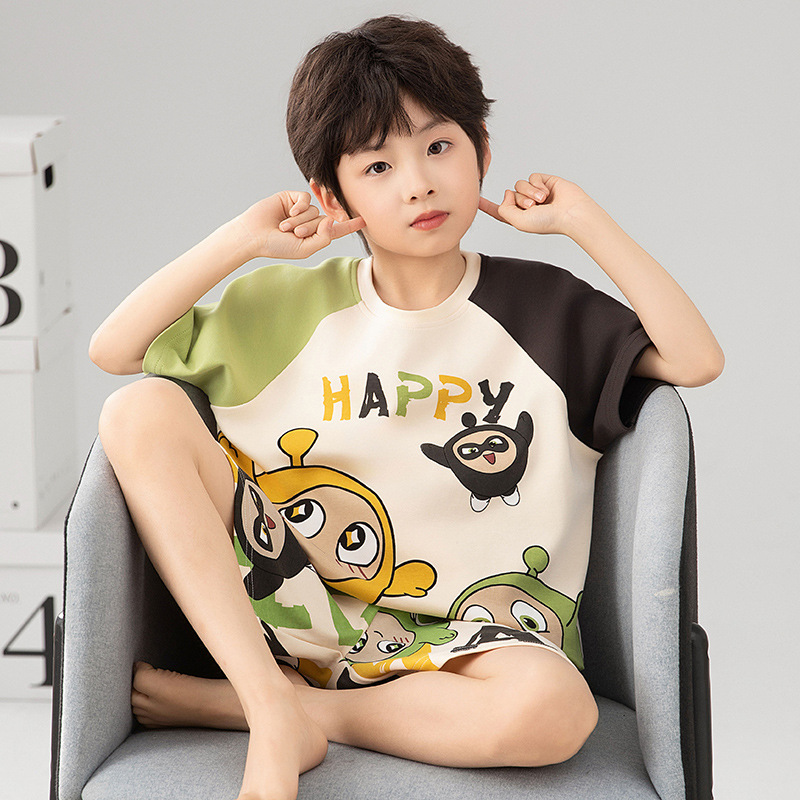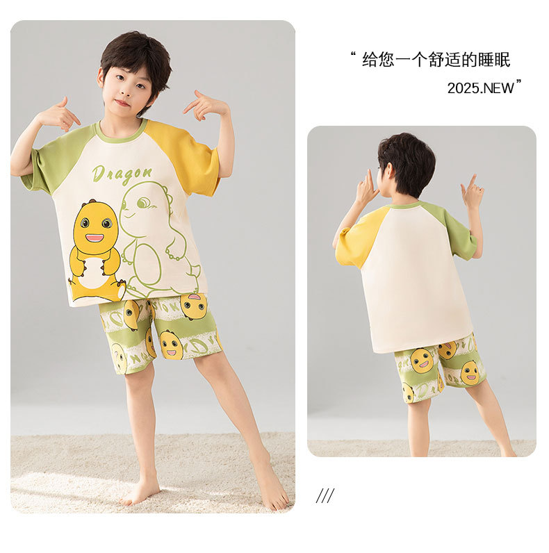 소년 여름 반팔 잠옷 순면 얇은 중대형 어린이 우유 드래곤 어린이 소년 아기 청소년 가정 의류 세트