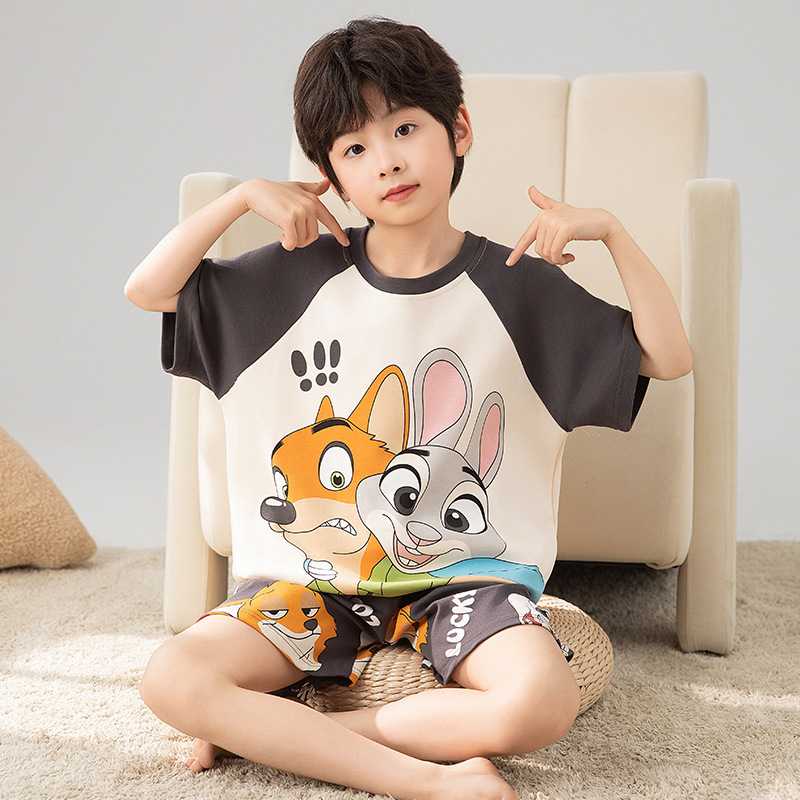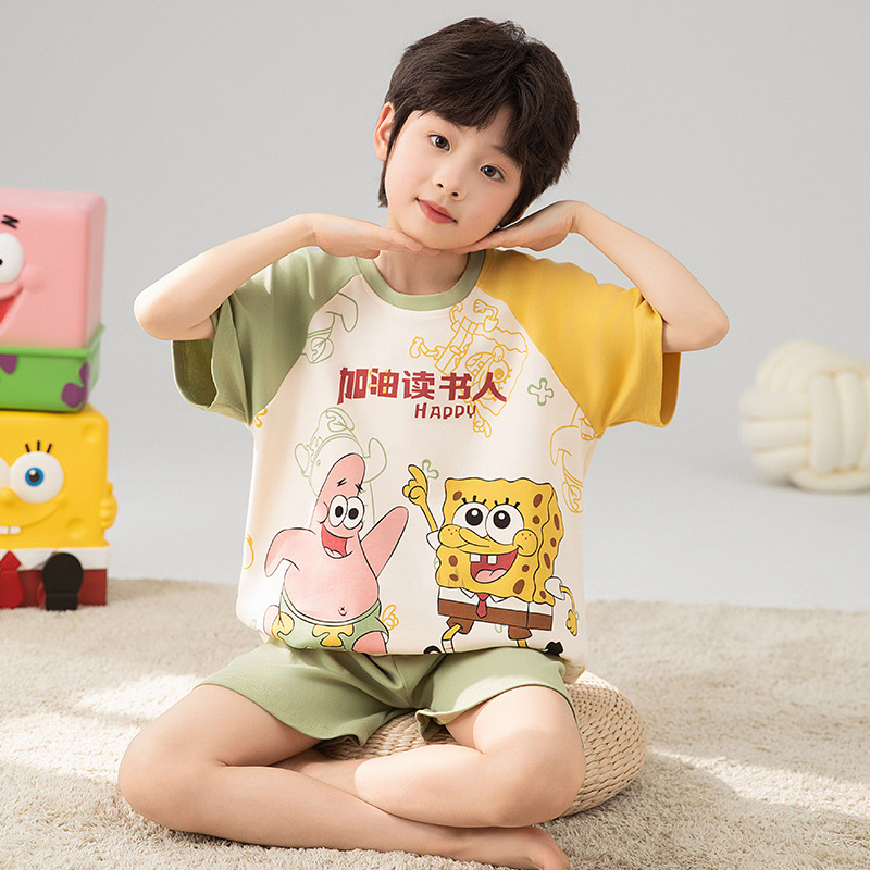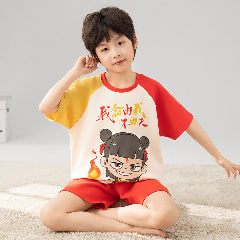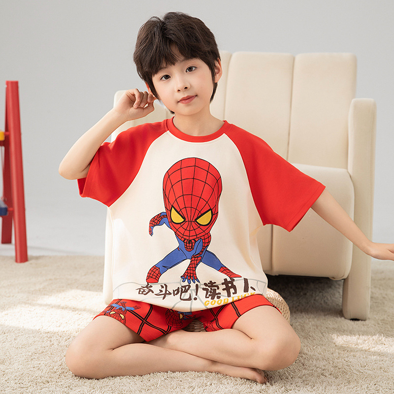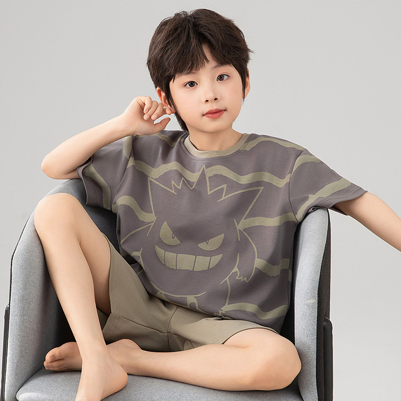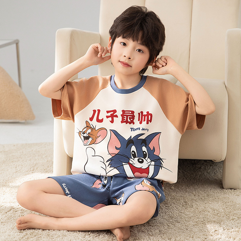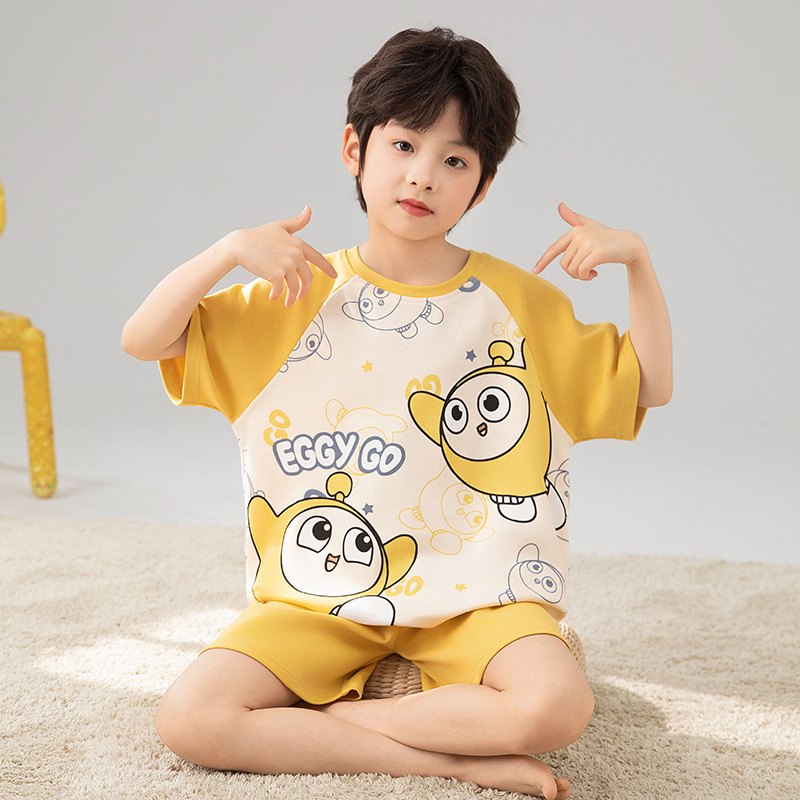 소년 여름 반팔 잠옷 순면 얇은 중대형 어린이 우유 드래곤 어린이 소년 아기 청소년 가정 의류 세트