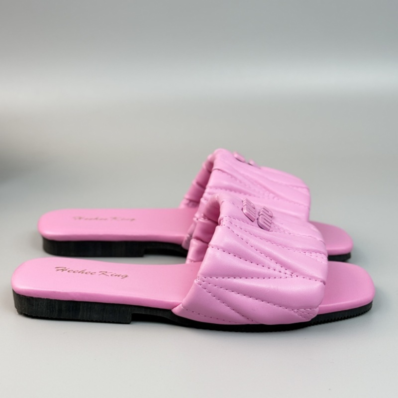 스퀘어 헤드 레터 플랫 외부 착용 슬리퍼 소녀 여름 새로운 도착 유행 비 슬립 인 요정 스타일 슬라이드 샌들스토어 가기