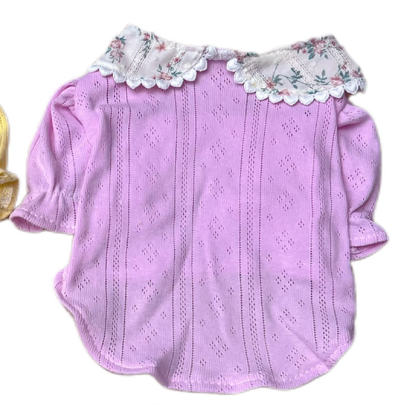 Ins 여름 얇은 메쉬 통기성 반팔 스트레치 니트 작은 강아지 우유 개 고양이 봄과 여름 옷 다목적