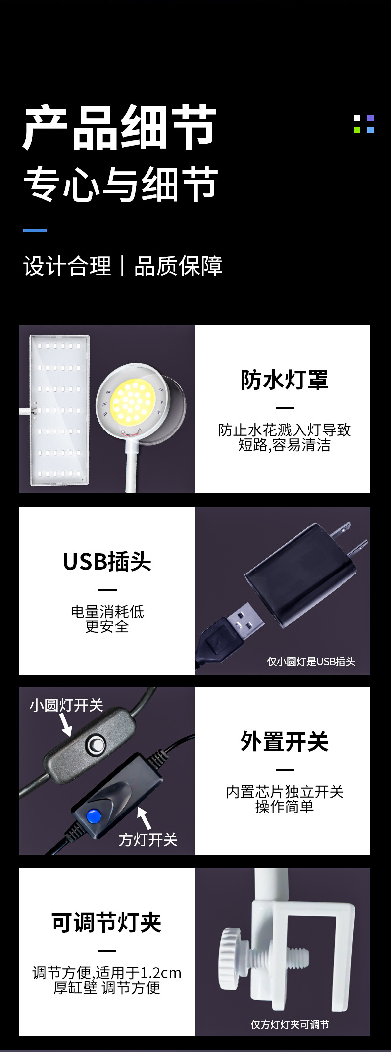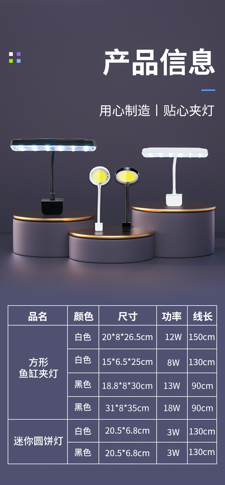 물고기 탱크 조명 클립 램프 중소 물고기 탱크 램프 led 특수 조경 방수 램프 물 공장 램프 조명 충전 수족관 랙