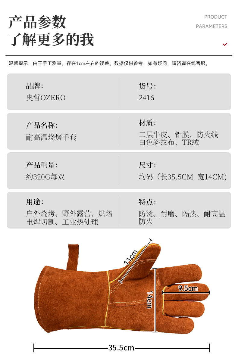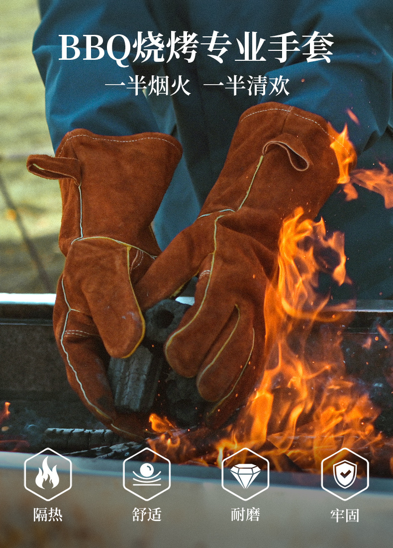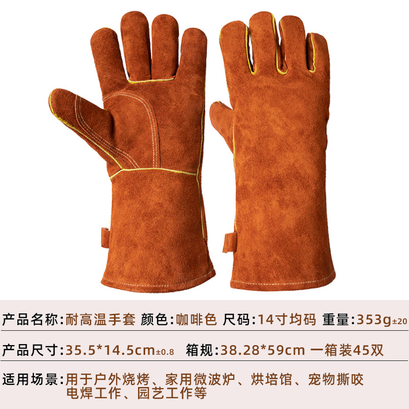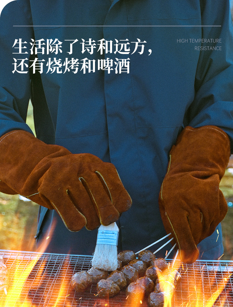 고온 내성 장갑 500 도 소 가죽 단열 안티 핫 바베큐 장갑 야외 캠핑 피크닉 화재 방지 장갑