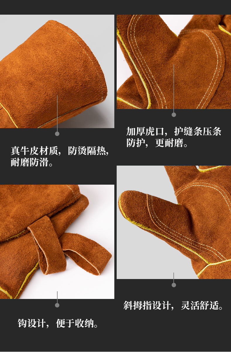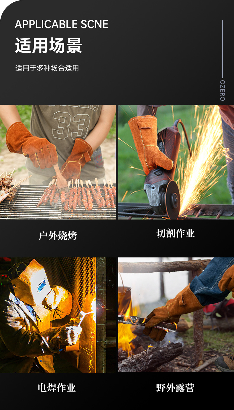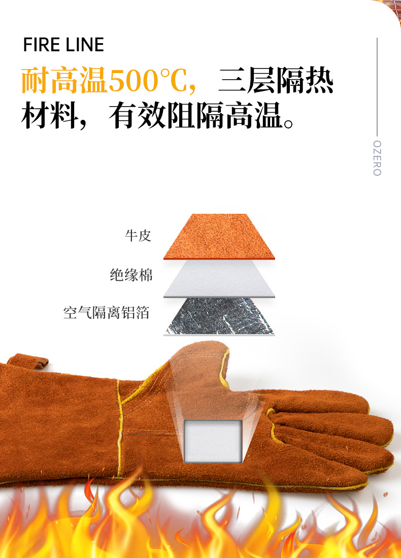 고온 내성 장갑 500 도 소 가죽 단열 안티 핫 바베큐 장갑 야외 캠핑 피크닉 화재 방지 장갑