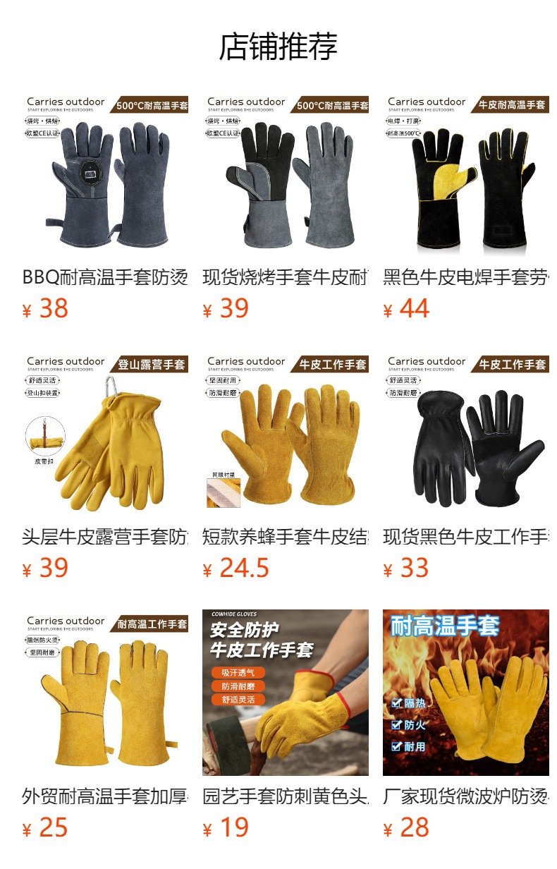 고온 내성 장갑 500 도 소 가죽 단열 안티 핫 바베큐 장갑 야외 캠핑 피크닉 화재 방지 장갑스토어 가기