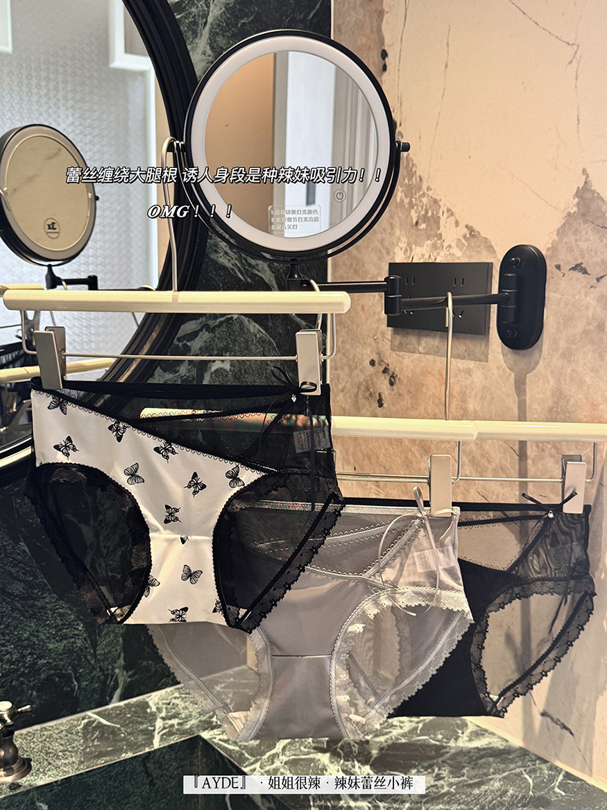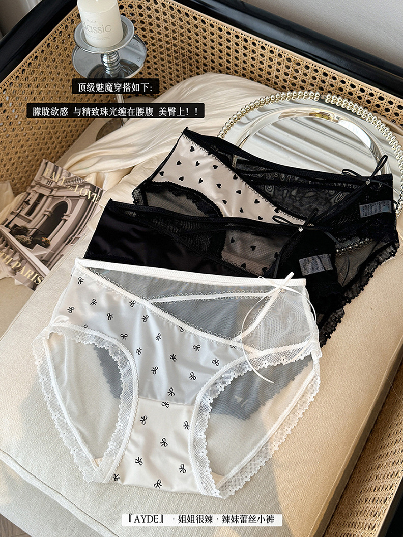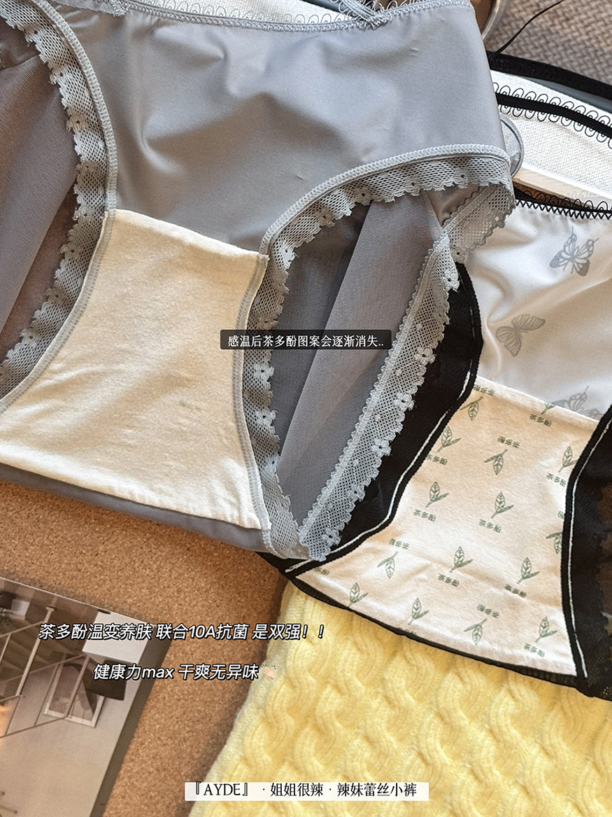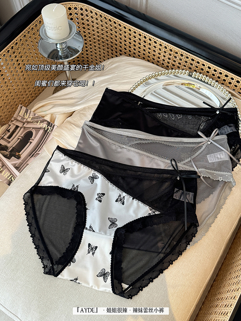 여성을위한 새로운 중국 스타일 나비 팬티 차 폴리 폴리 항균 바닥 새틴 레이스 중공 얇은 스트랩 섹시한 삼각형 반바지