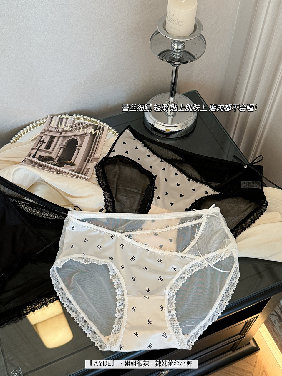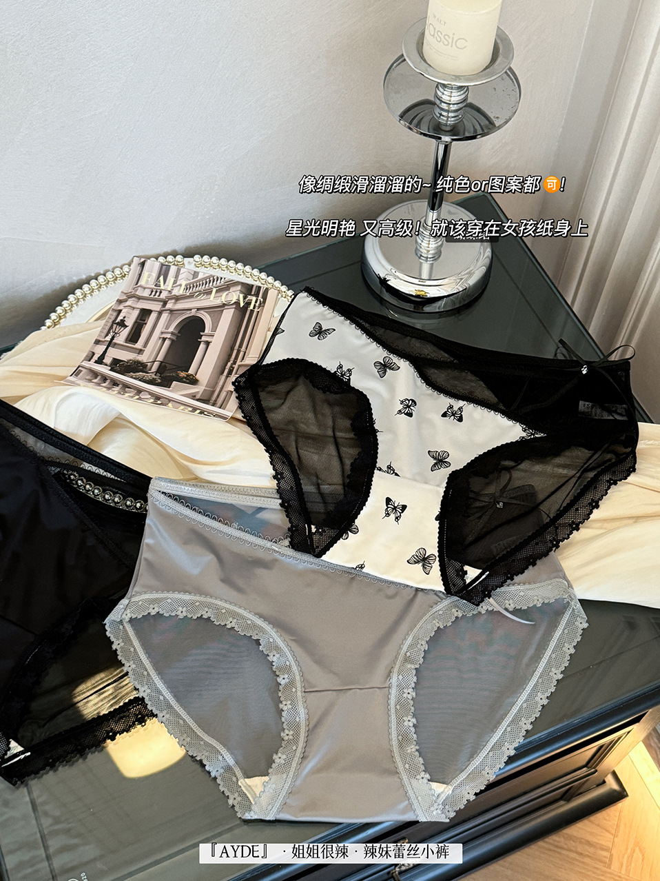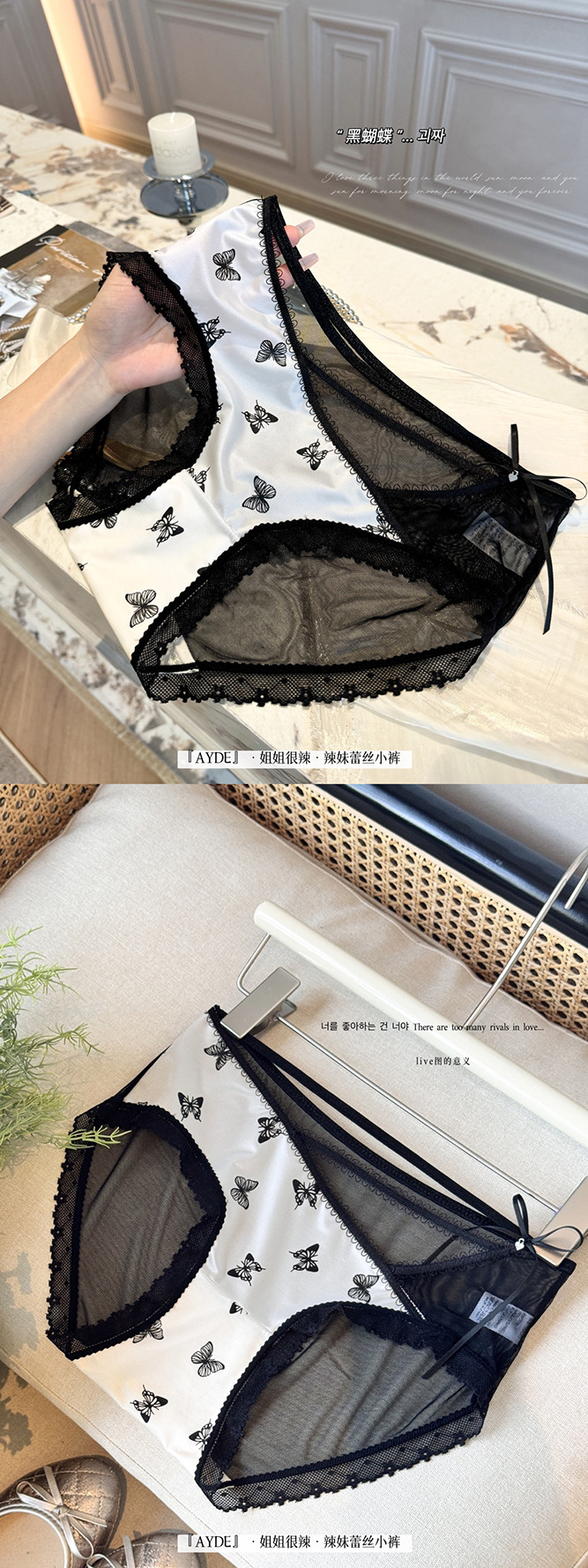 여성을위한 새로운 중국 스타일 나비 팬티 차 폴리 폴리 항균 바닥 새틴 레이스 중공 얇은 스트랩 섹시한 삼각형 반바지