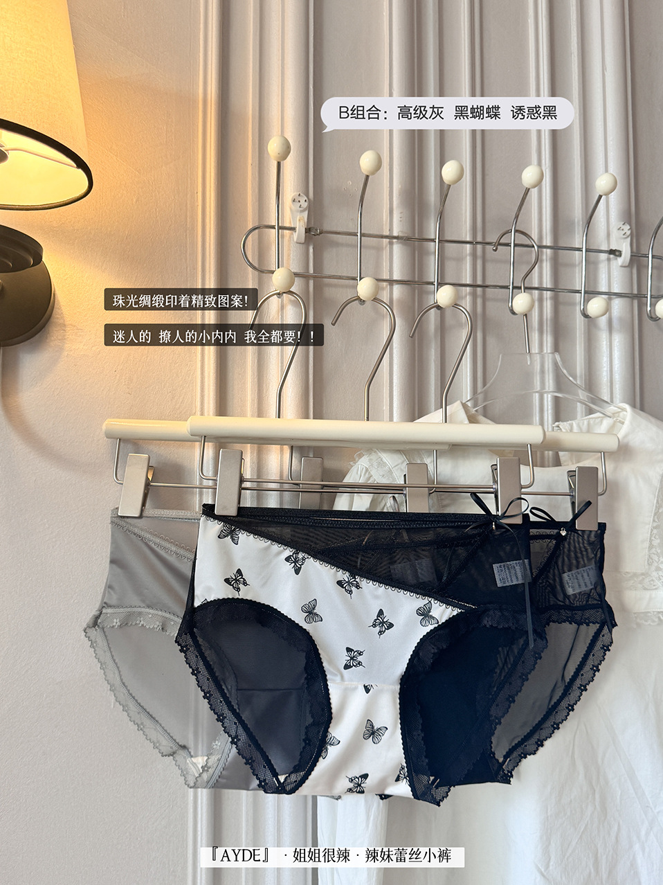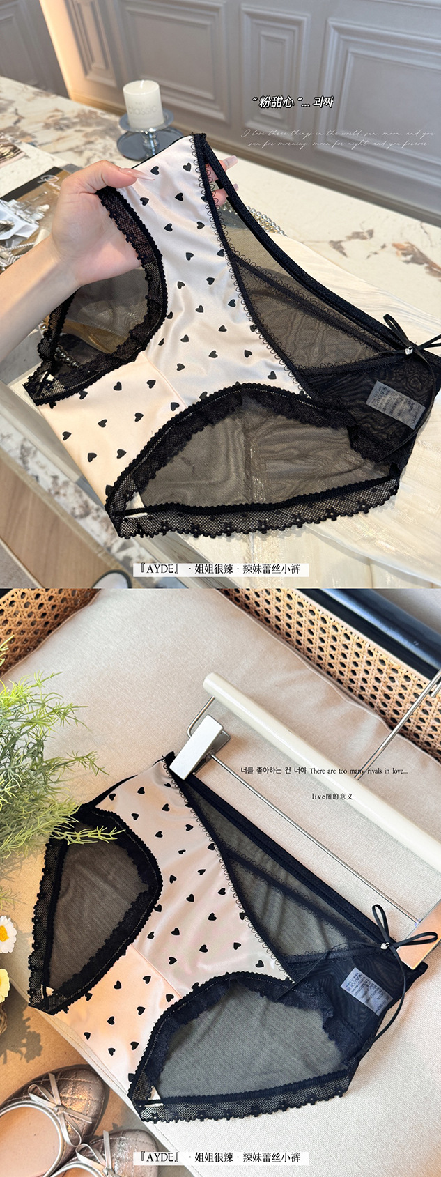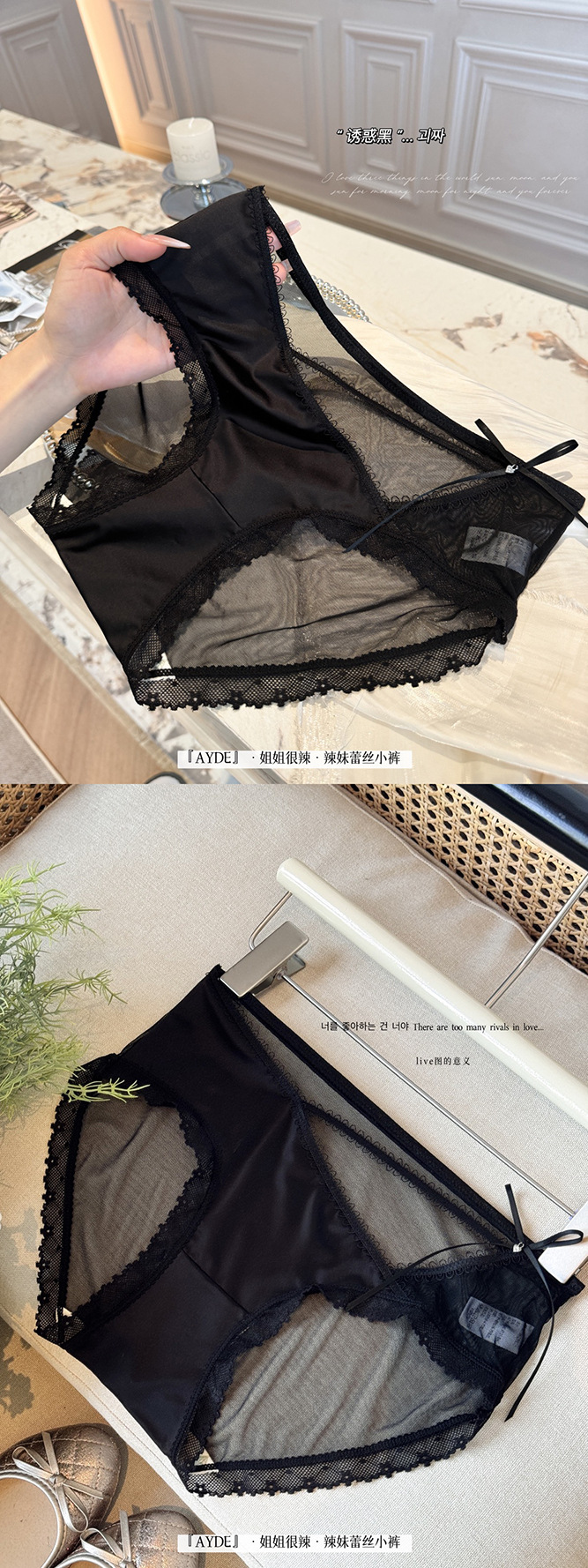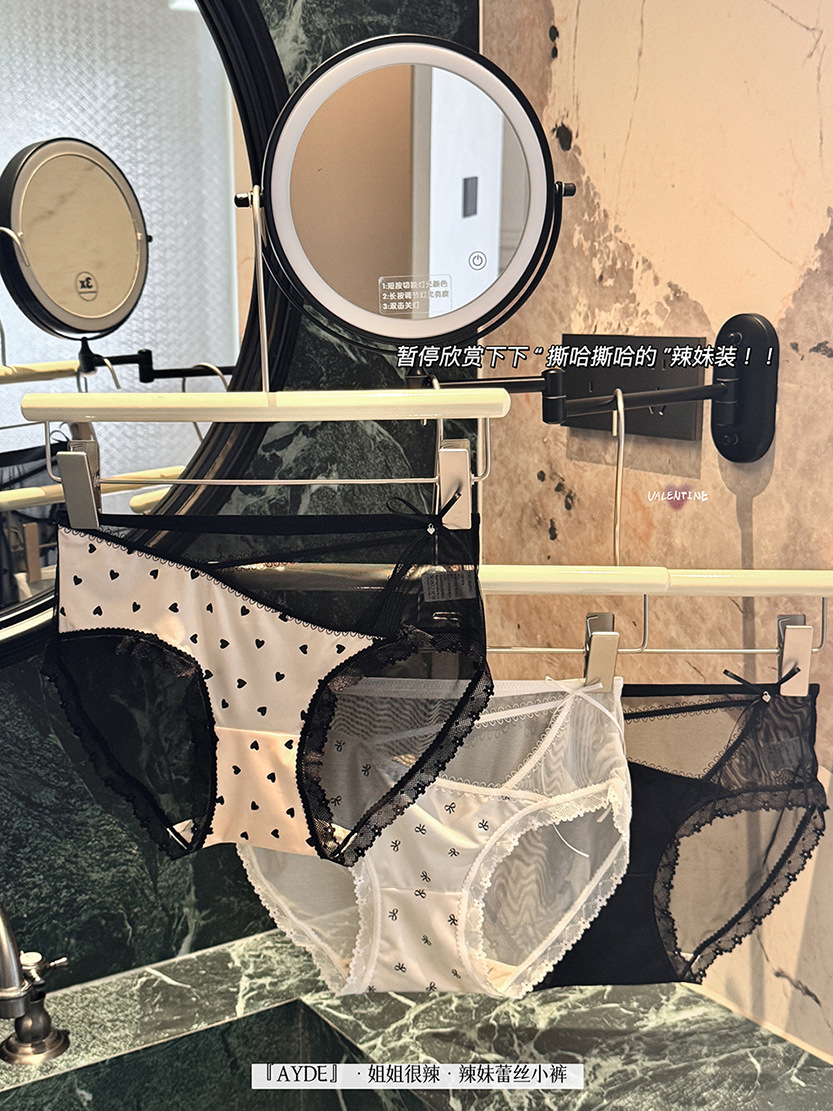 여성을위한 새로운 중국 스타일 나비 팬티 차 폴리 폴리 항균 바닥 새틴 레이스 중공 얇은 스트랩 섹시한 삼각형 반바지스토어 가기
