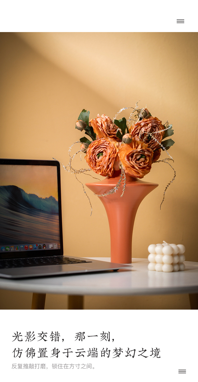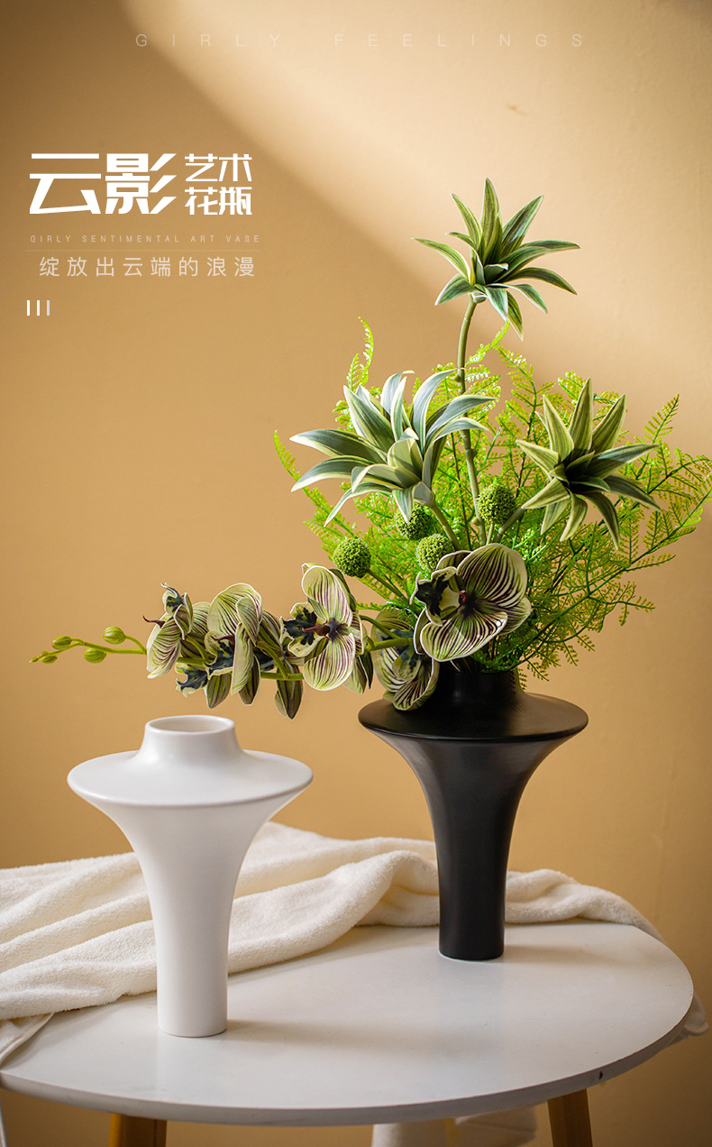프렌치 크림 스타일 세라믹 꽃병 미니멀리스트 부드러운 가정 거실 식탁 B&B 호텔 가벼운 럭셔리 가구 크로스보더스토어 가기