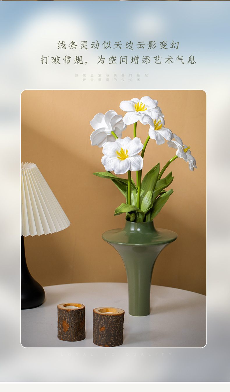 프렌치 크림 스타일 세라믹 꽃병 미니멀리스트 부드러운 가정 거실 식탁 B&B 호텔 가벼운 럭셔리 가구 크로스보더