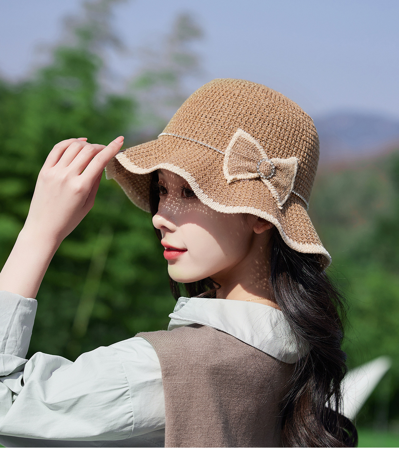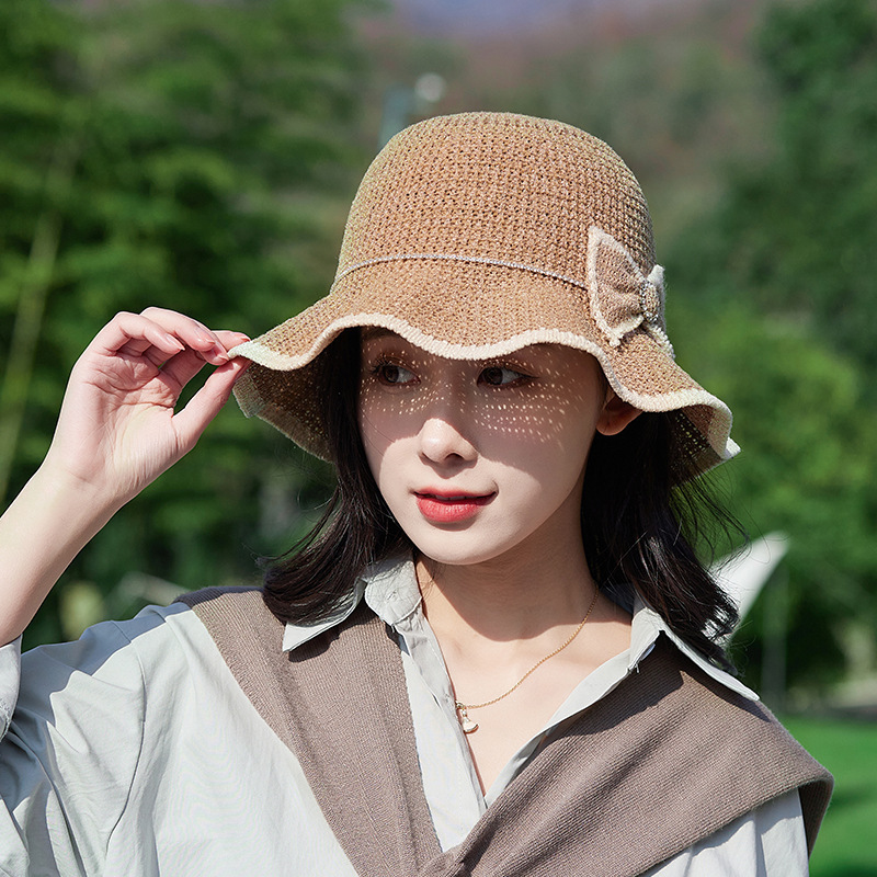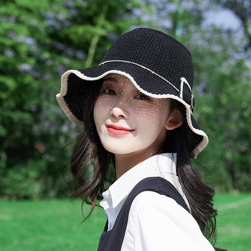 주름진 빈 어부 모자 새로운 여름 패션 활 태양 모자 접이식 선 스크린 모자 어부 모자
