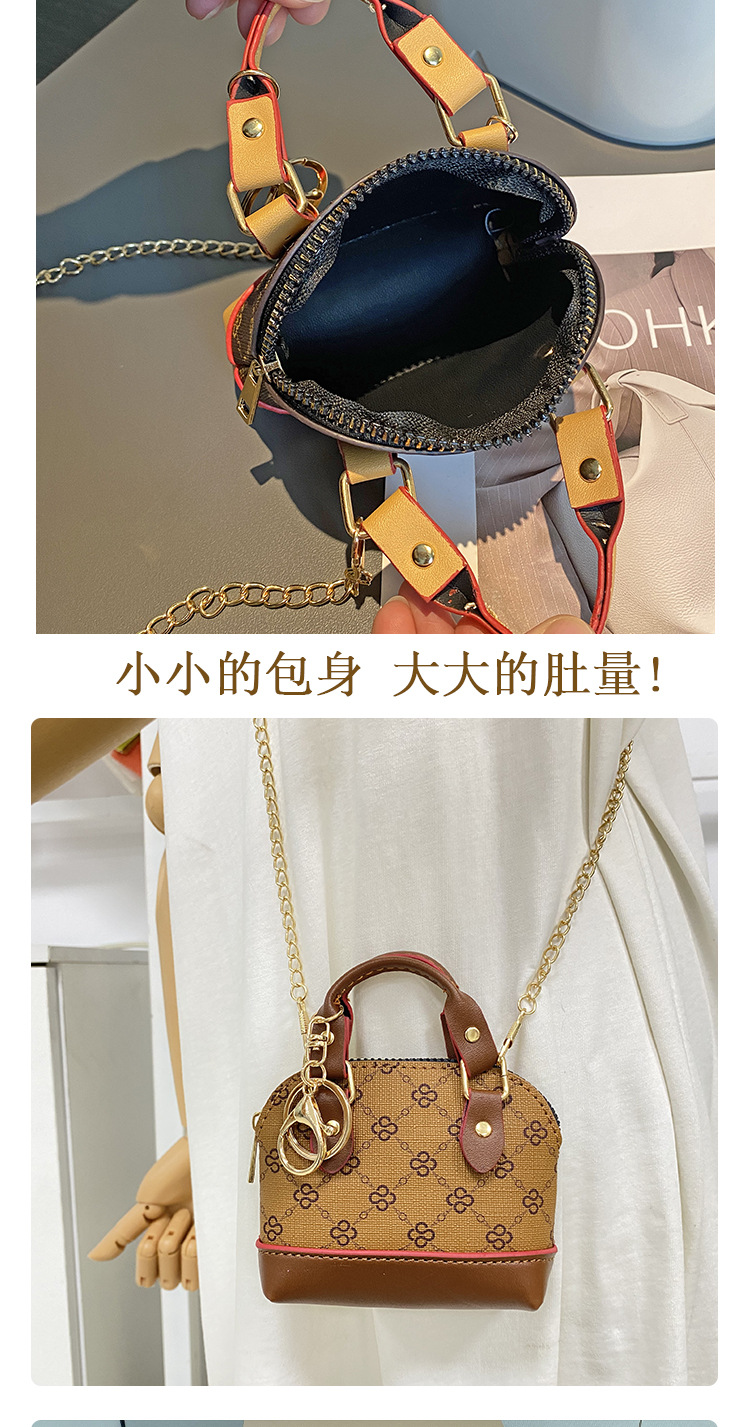 印花ins手提斜跨迷你链条小包 高级感路易Le时尚老花儿童零钱包