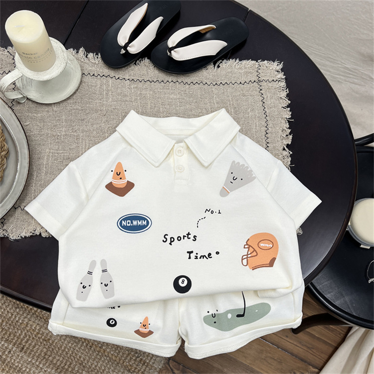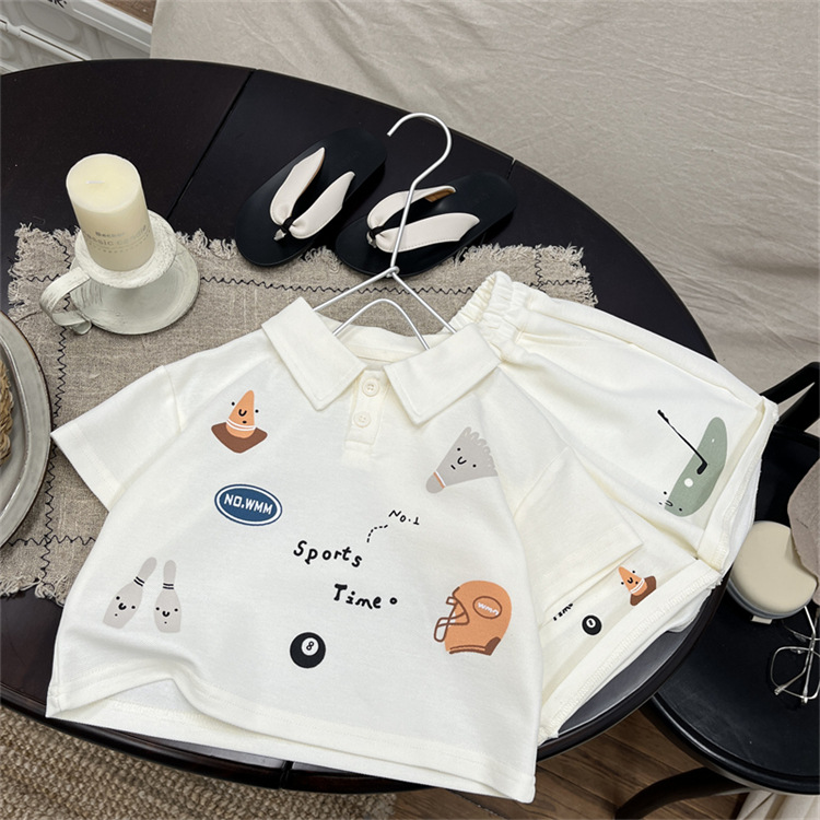 아기 세트 여름 새 소년 한국식 폴로 셔츠 반팔 티셔츠 어린이 여름 반바지 얇은 투피스 세트스토어 가기
