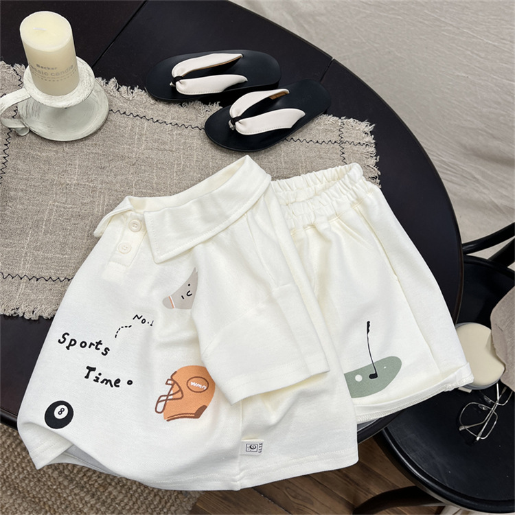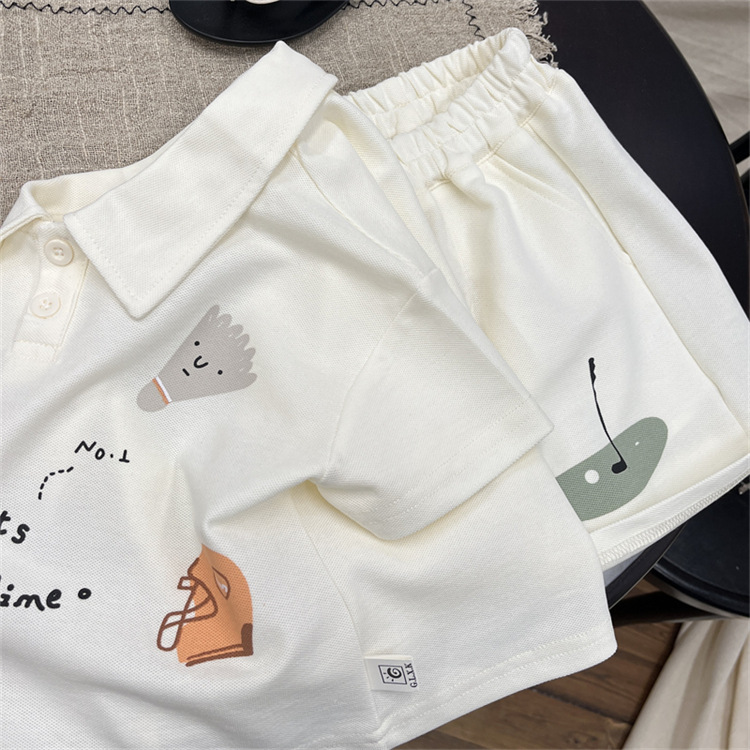 아기 세트 여름 새 소년 한국식 폴로 셔츠 반팔 티셔츠 어린이 여름 반바지 얇은 투피스 세트
