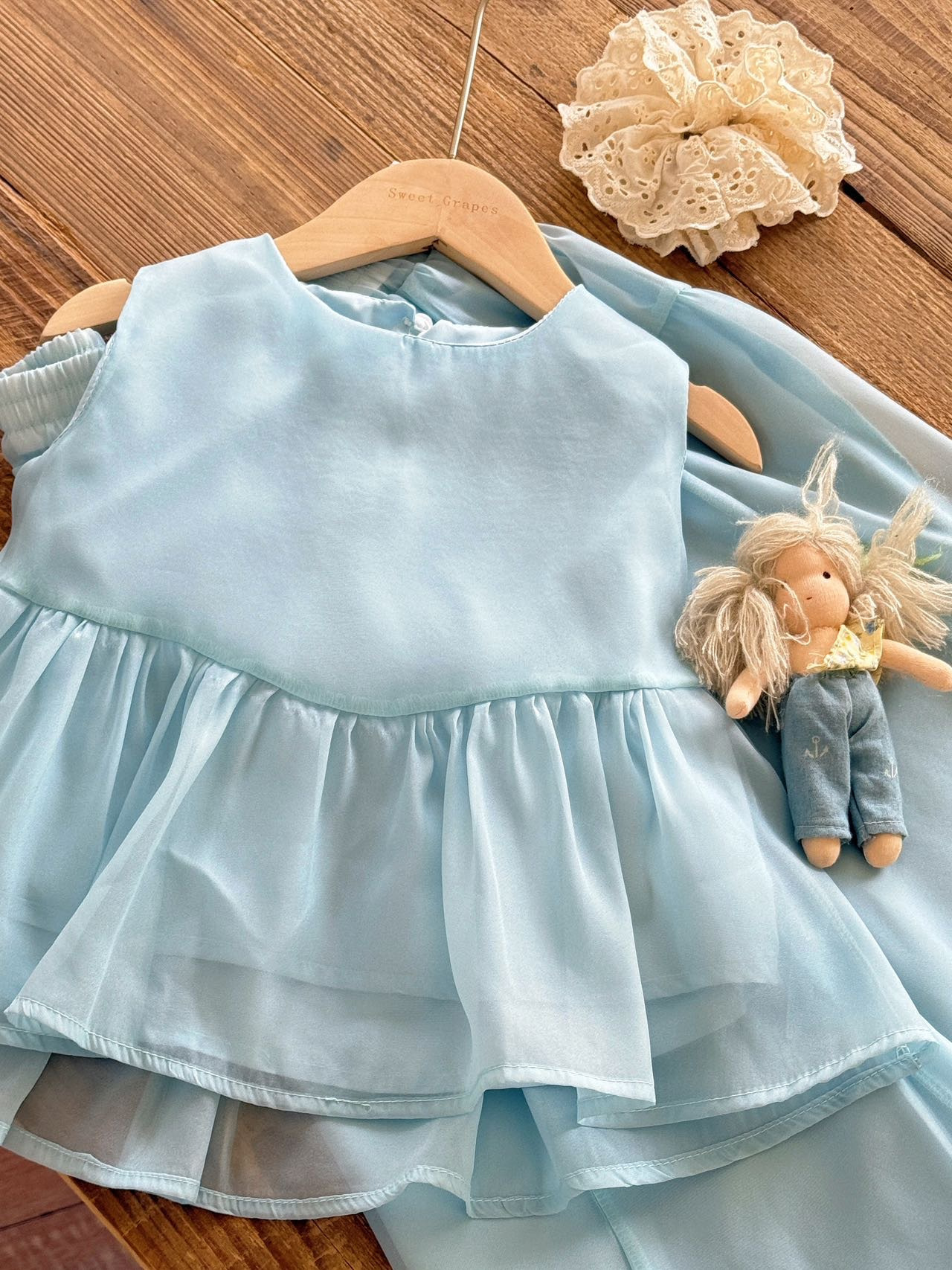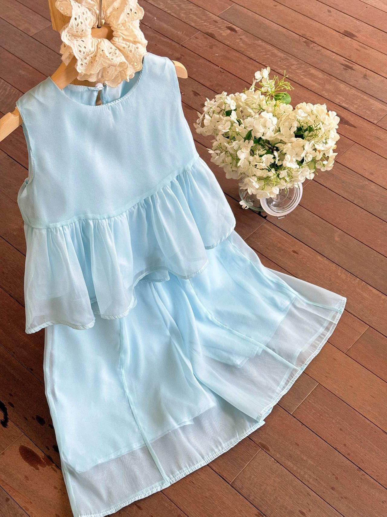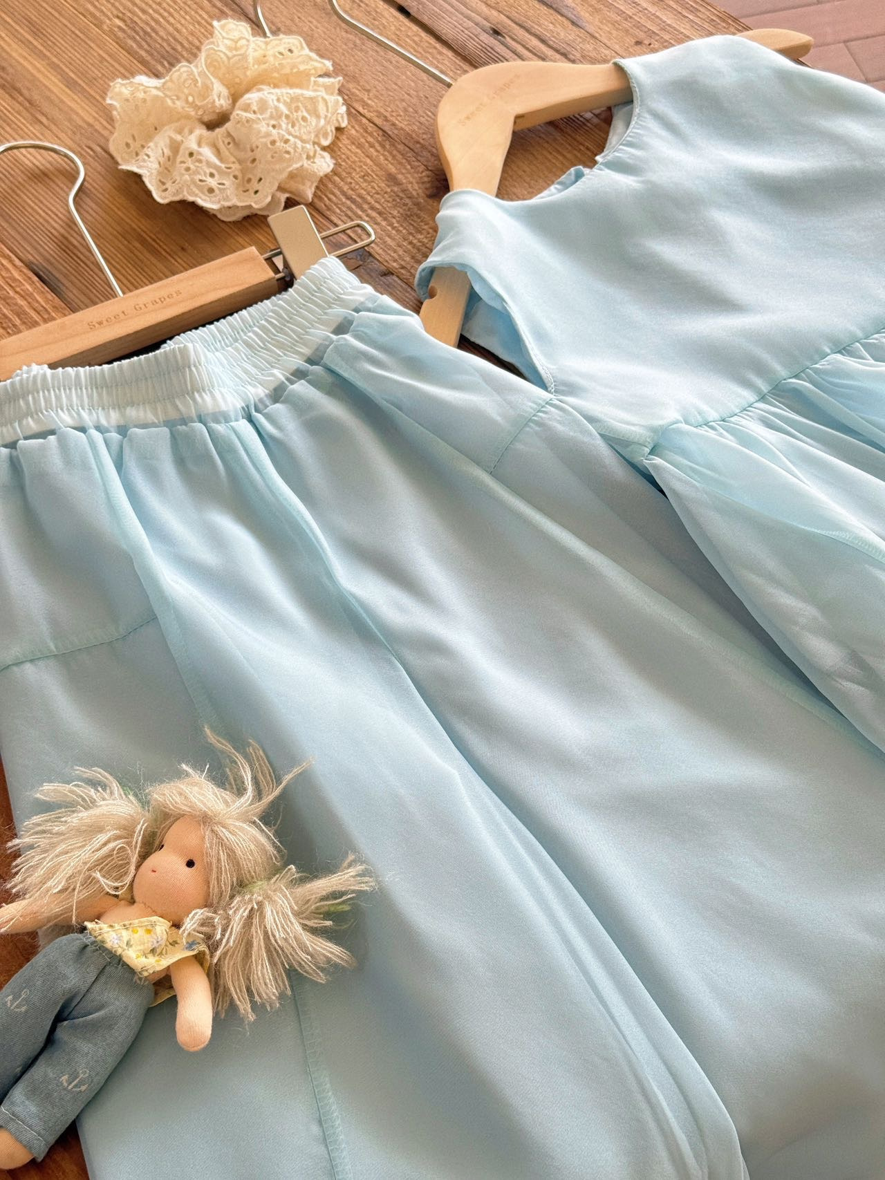 아기 소녀 2025 새로운 얇은 세트 여름 원피스 서양식 민소매 최고 캐주얼 와이드 다리 바지 투피스 세트