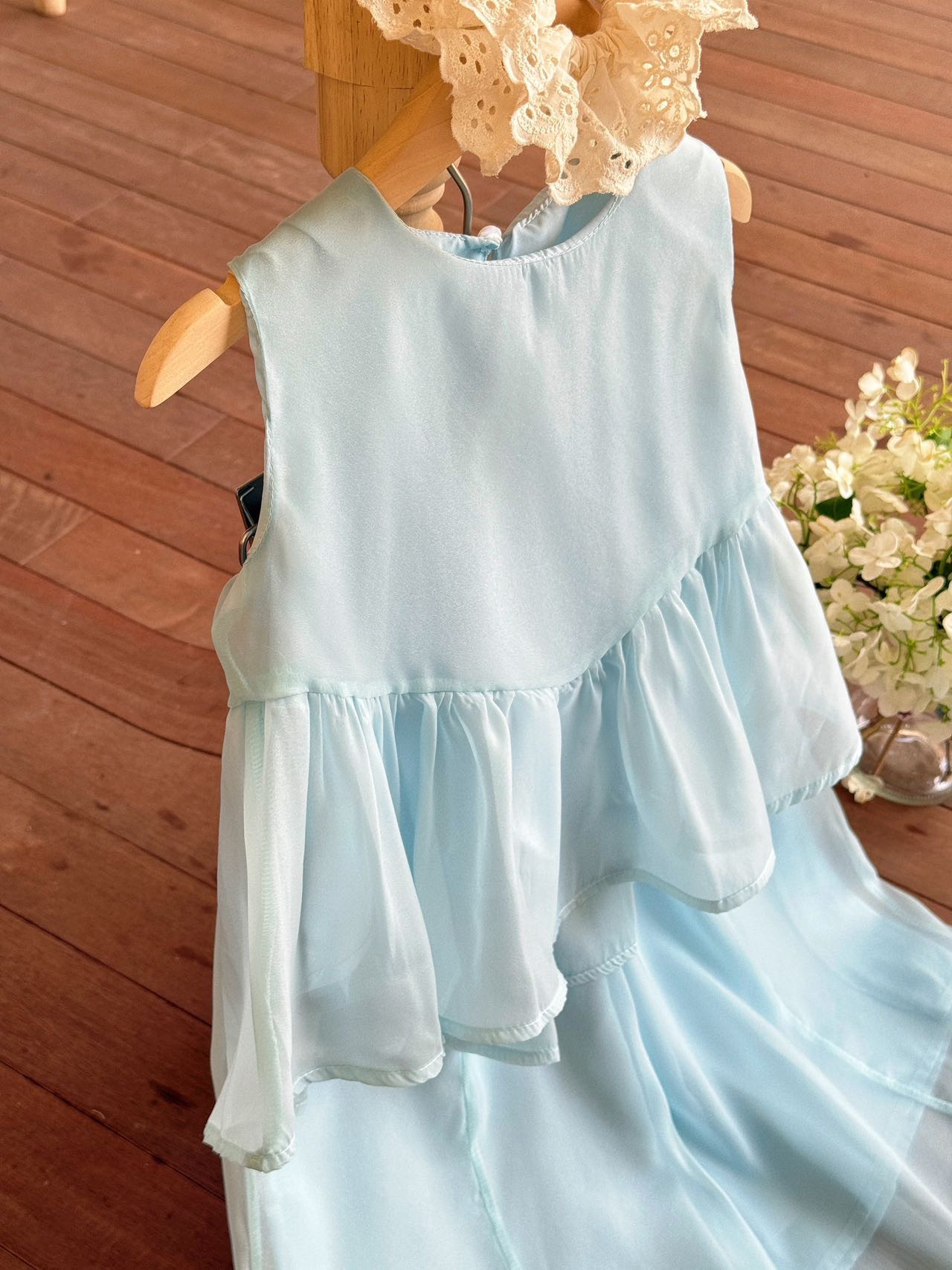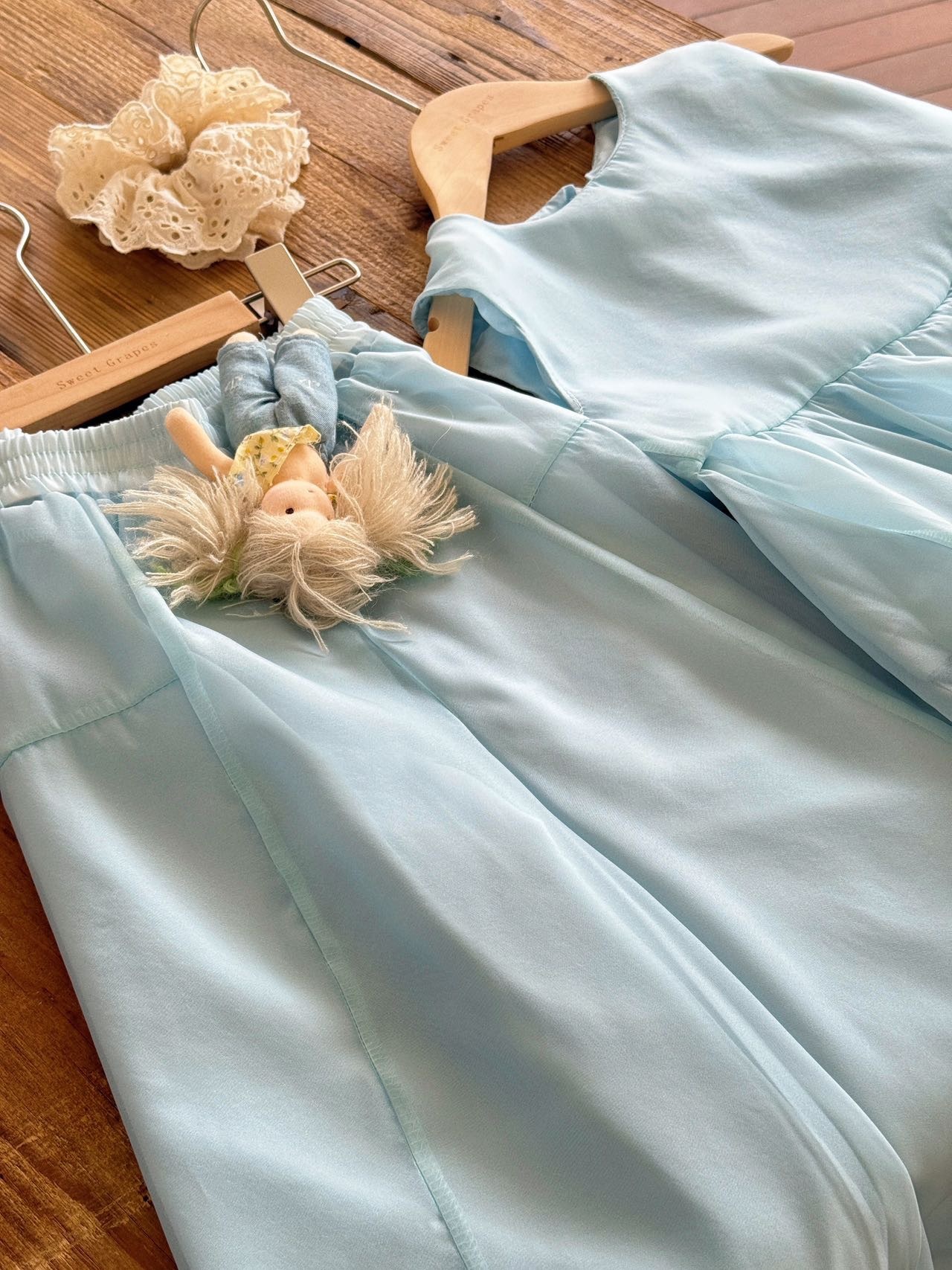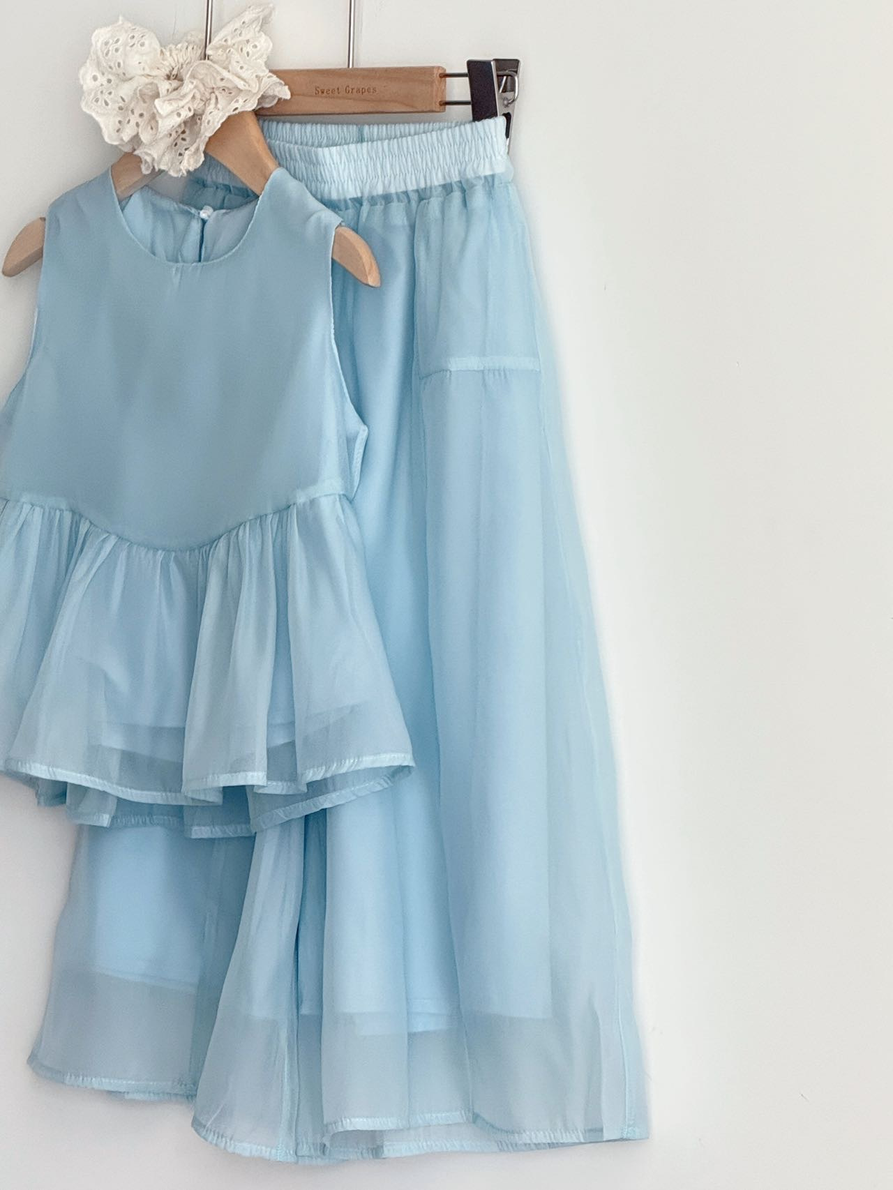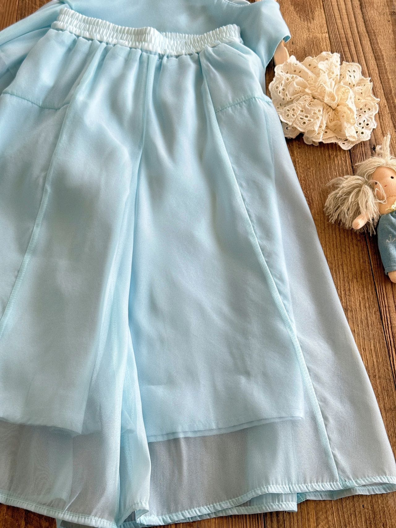 아기 소녀 2025 새로운 얇은 세트 여름 원피스 서양식 민소매 최고 캐주얼 와이드 다리 바지 투피스 세트