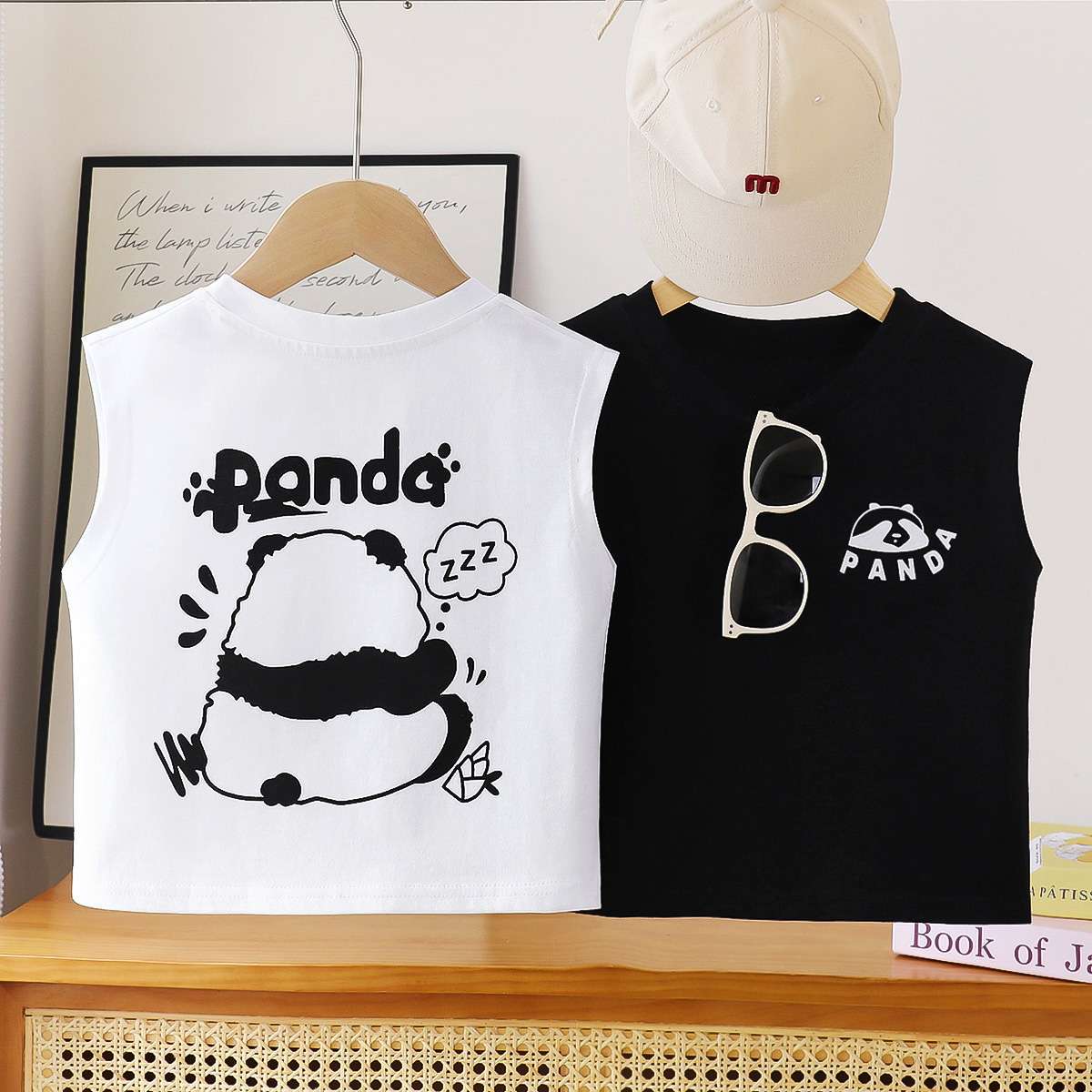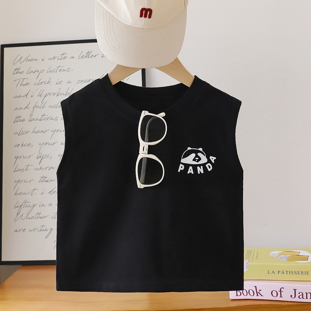 여름 어린이 면화 민소매 티셔츠 새로운 소년 만화 인쇄 상단 어린이 레저 조끼 도매스토어 가기