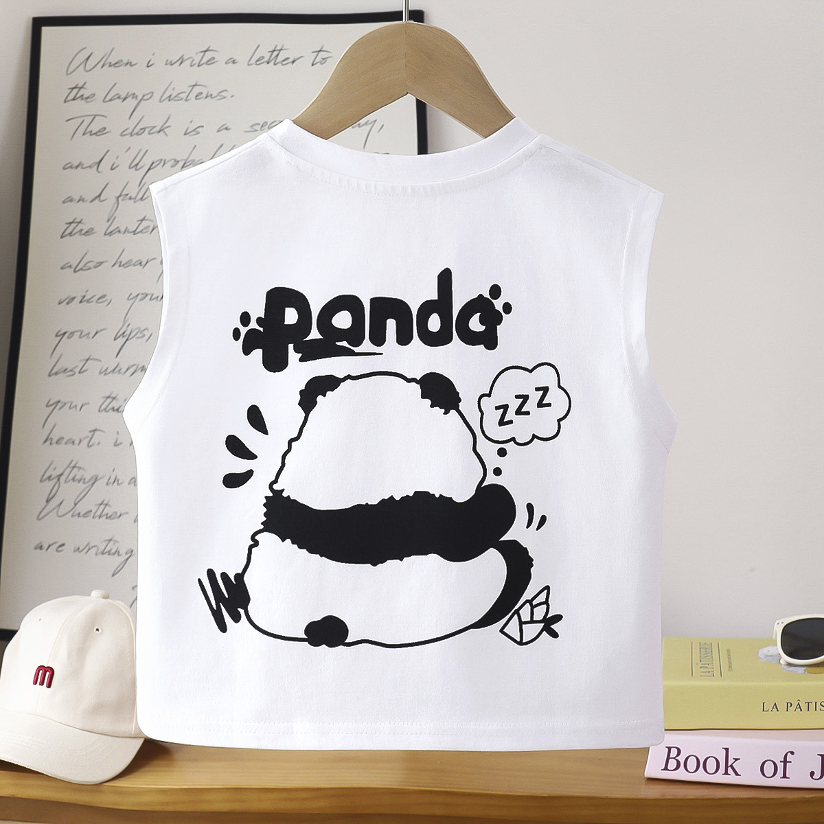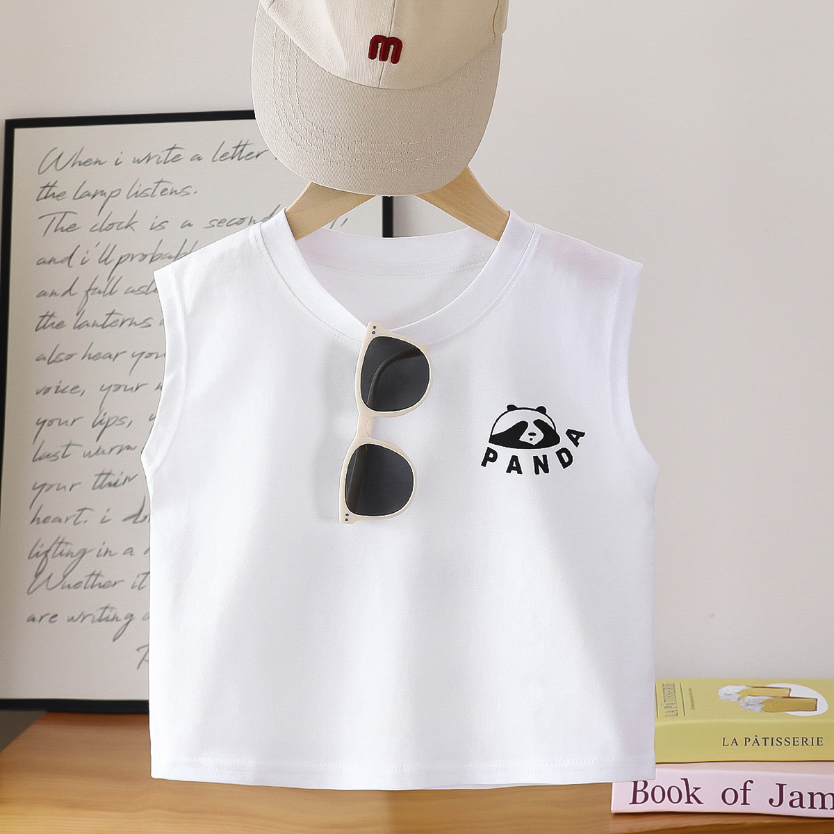 여름 어린이 면화 민소매 티셔츠 새로운 소년 만화 인쇄 상단 어린이 레저 조끼 도매