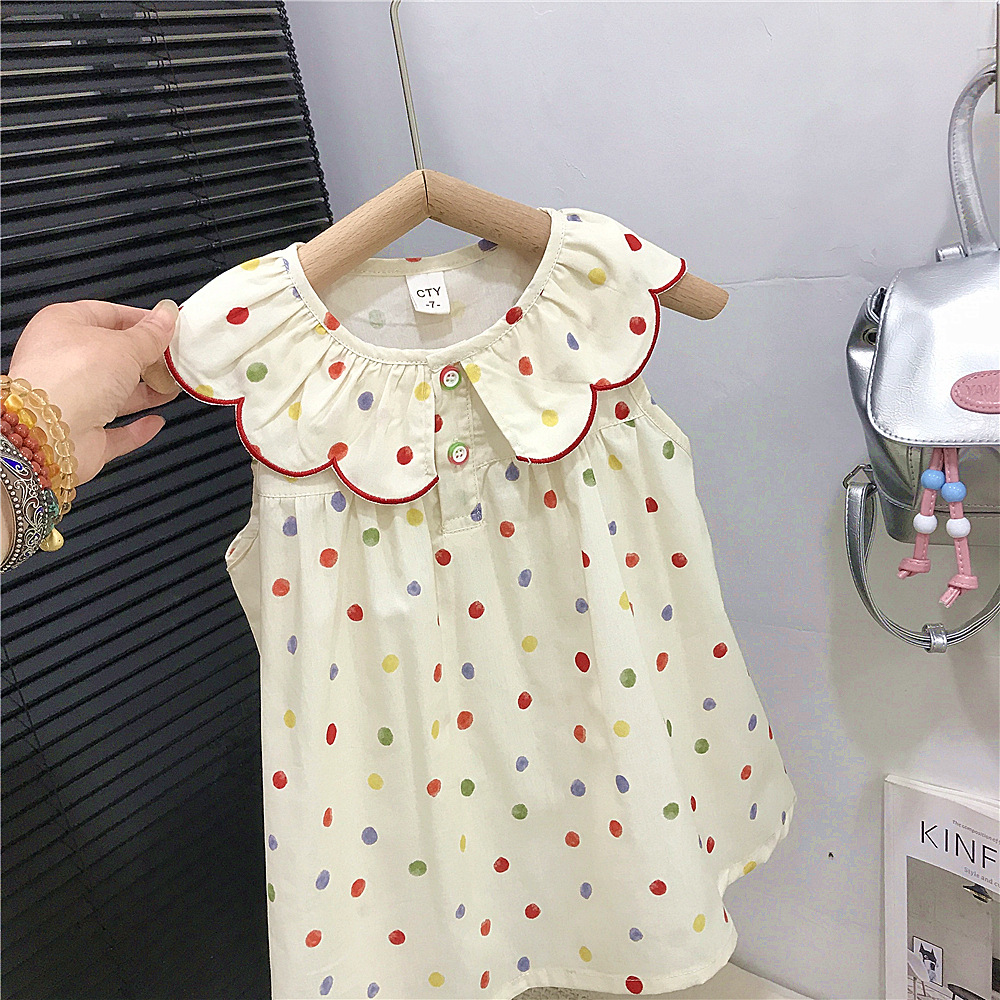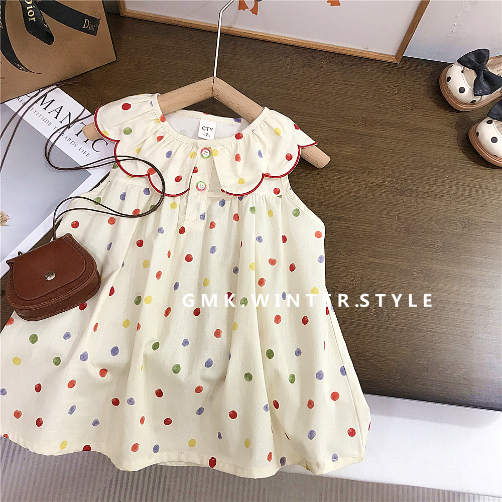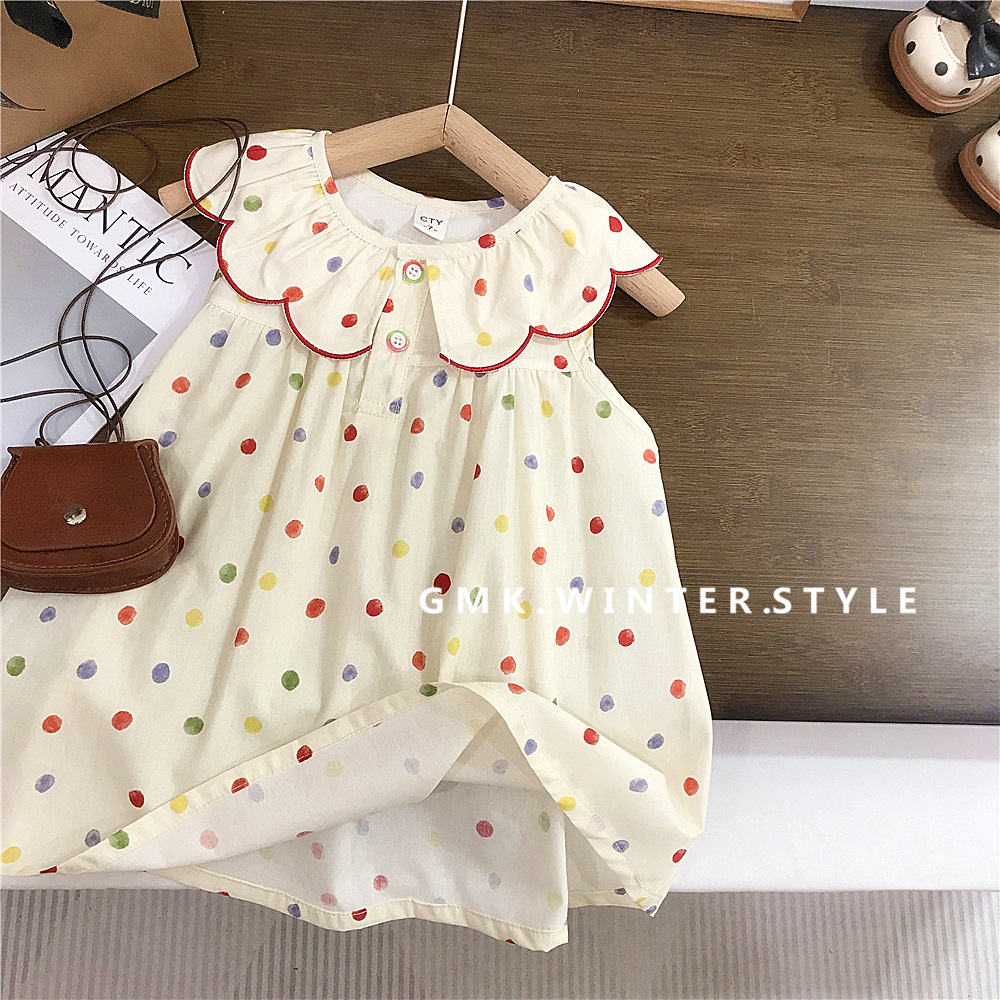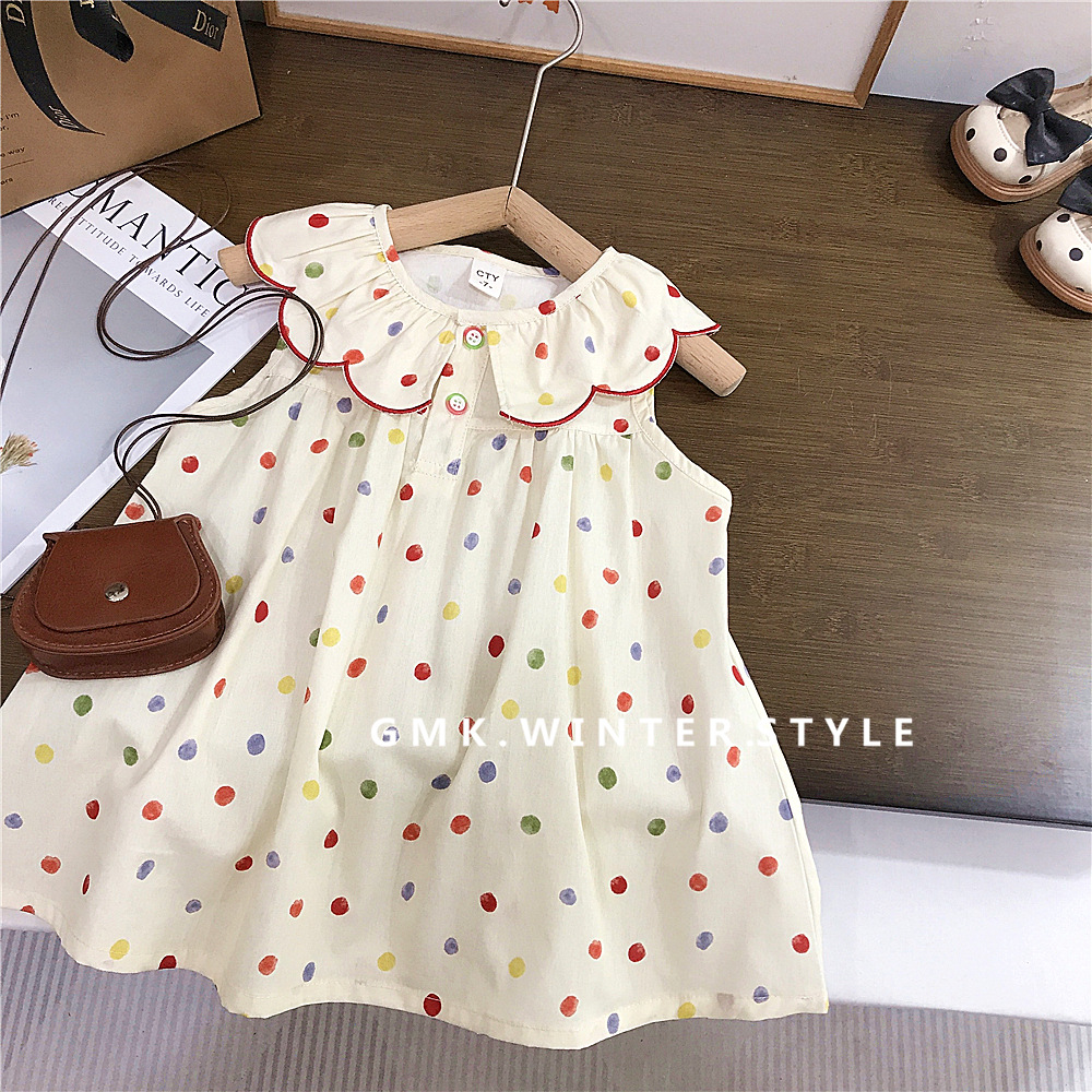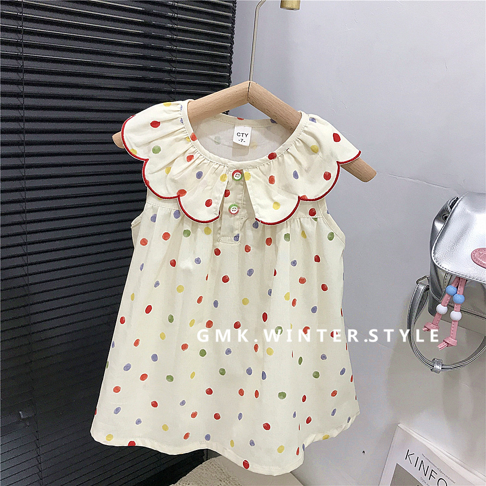 여자 원피스 여름 원피스 새로운 스타일 어린이 공주 원피스 여자 아기 점 민소매 Vat 치마 대외 무역