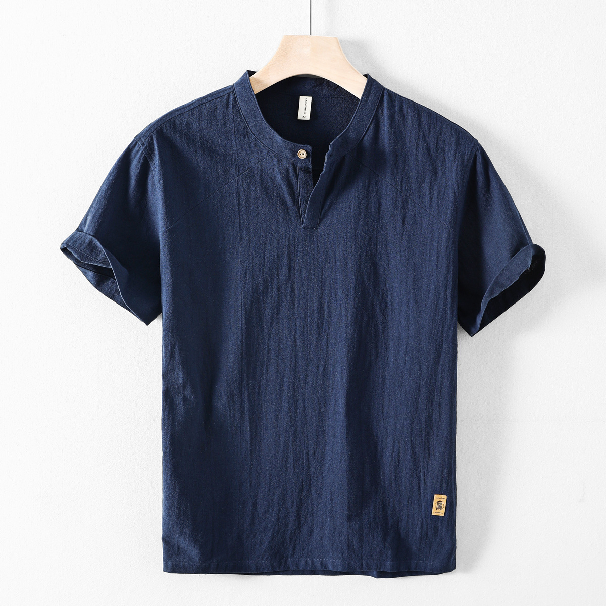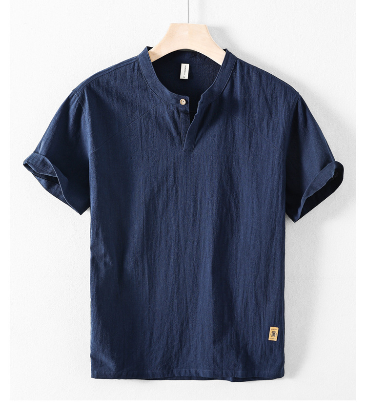 도매 여름 신작 남성 반팔 린넨 셔츠 중국 스타일 캐주얼 스탠드 칼라 코튼 린넨 5부 소매 셔츠 버드 나뭇가지스토어 가기