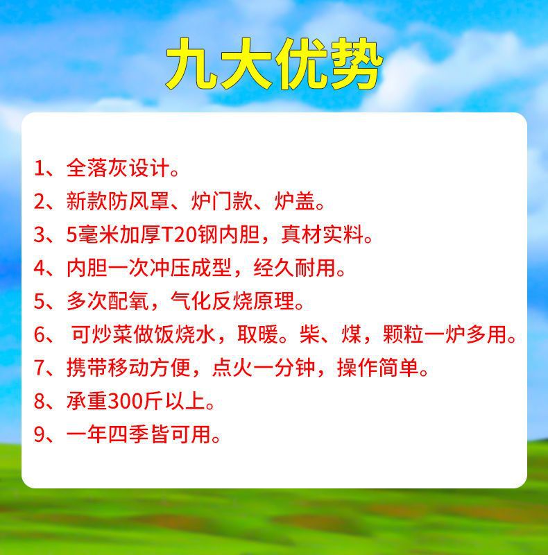 • 대형 강철 방광 장작 난로 + 팬 + 충전 헤드 + 방풍 커버