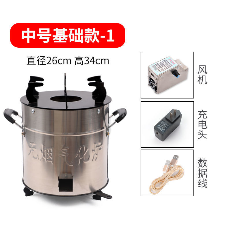 • 중형 B형 장작 난로 + 팬 + 충전 헤드 + 방풍 커버