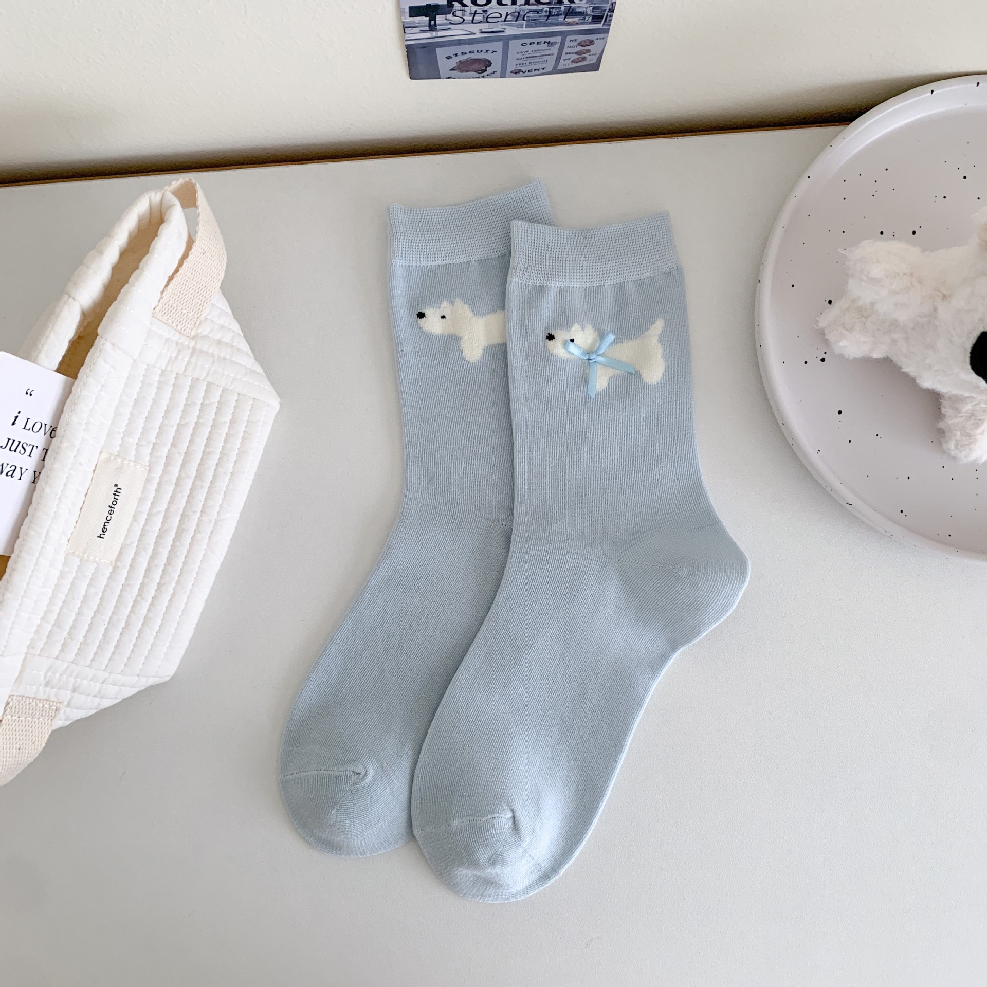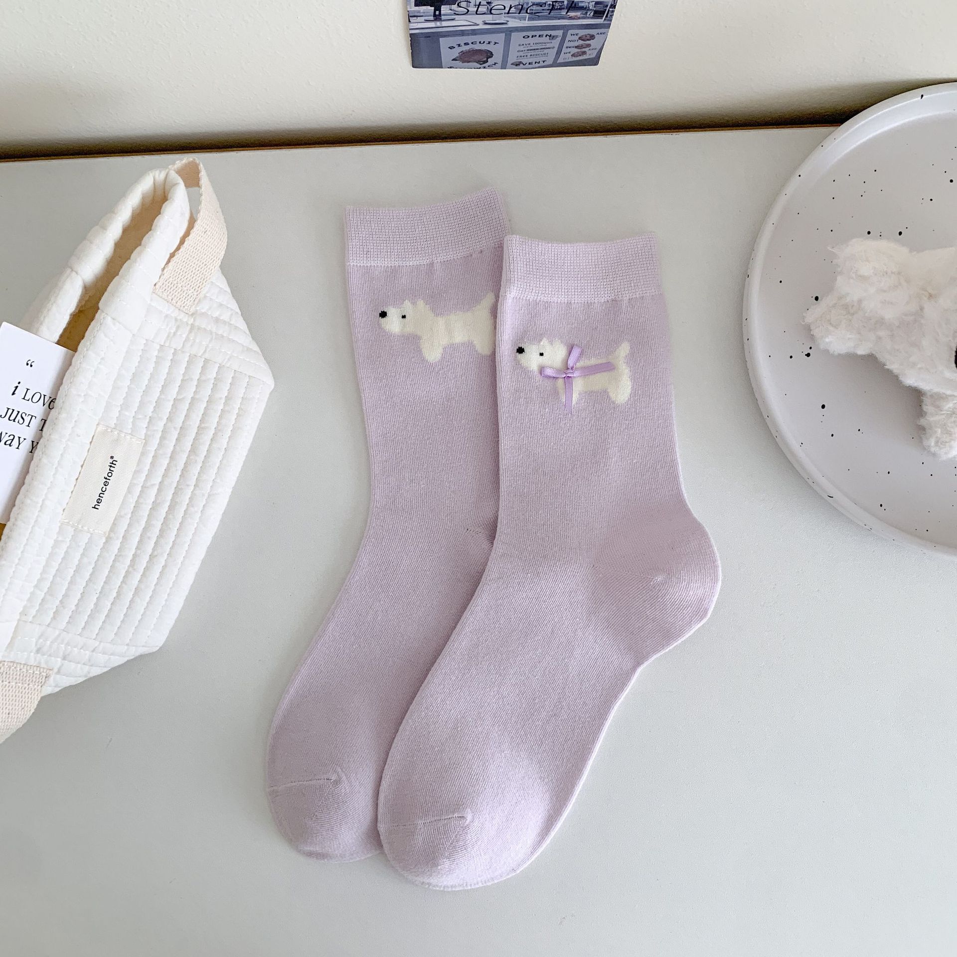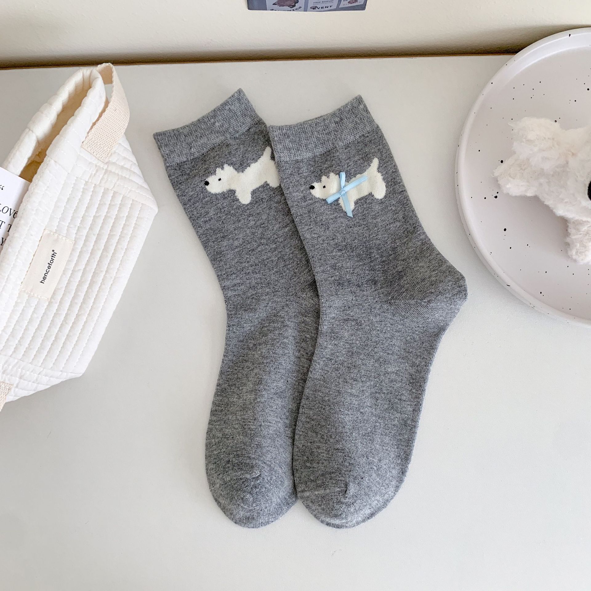 만화 강아지 더미 양말 활 액세서리 중간 튜브 소녀의 귀여운 한국식 Ins Combed 코튼 양말 봄과 여름 올 매치