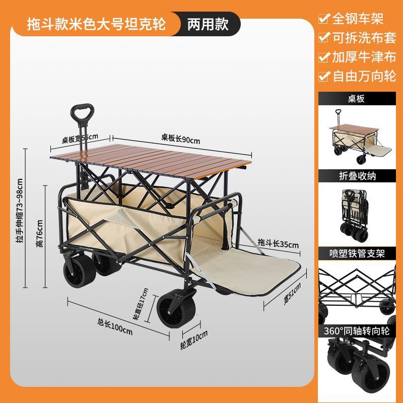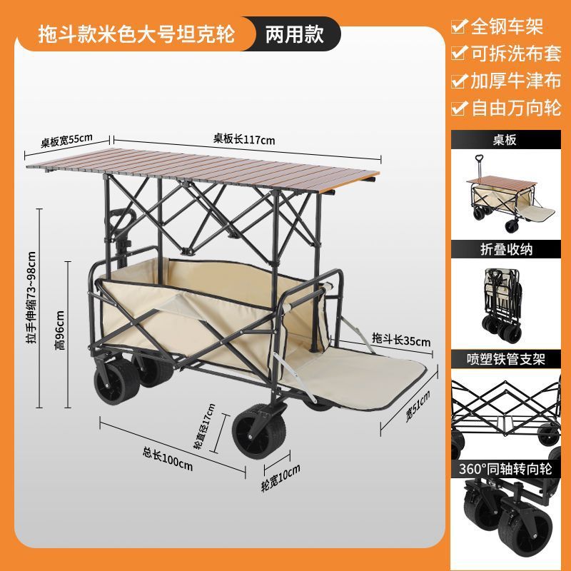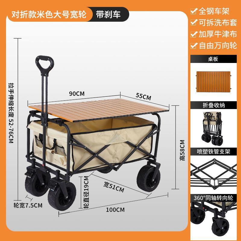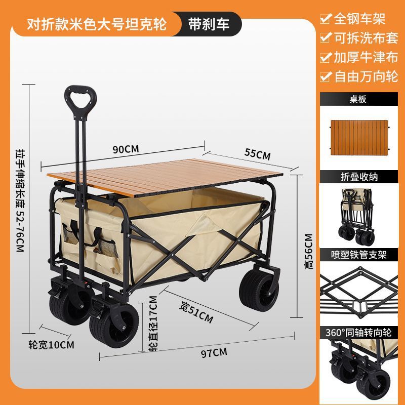 • 캠퍼밴 + 접이식 스톨 테이블 - 브레이크가 장착된 대형 오프로드 휠(베이지색)