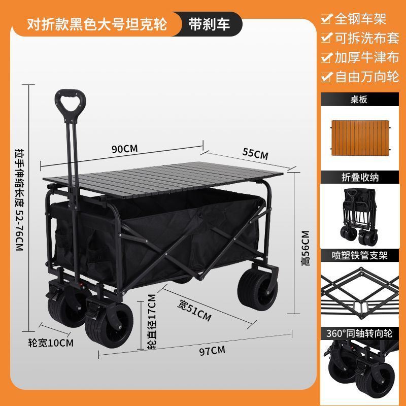 • 캠퍼밴 + 접이식 스톨 테이블 - 브레이크가 장착된 대형 오프로드 휠(검은색)