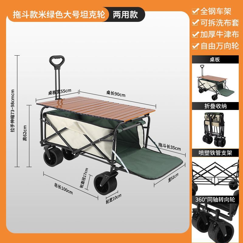 • 캠퍼밴 + 접이식 스톨 테이블 - 브레이크가 장착된 대형 탱크 휠(카키색)