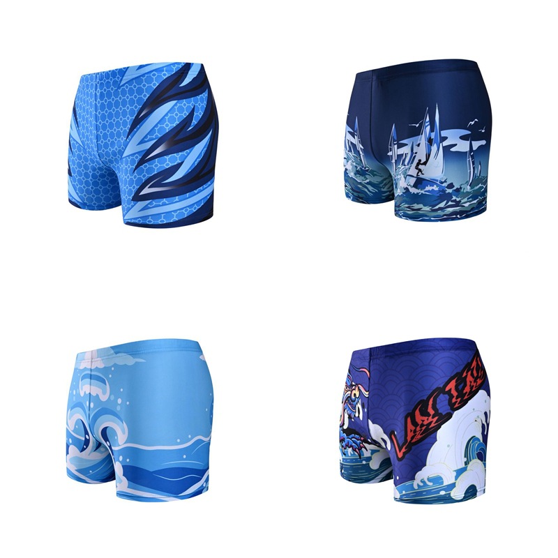 새로운 디지털 인쇄 수영 바지 성인 빠른 건조 온천 수영 바지 플랫 앵글 폴리 에스터 패션 남자 수영 바지 도매