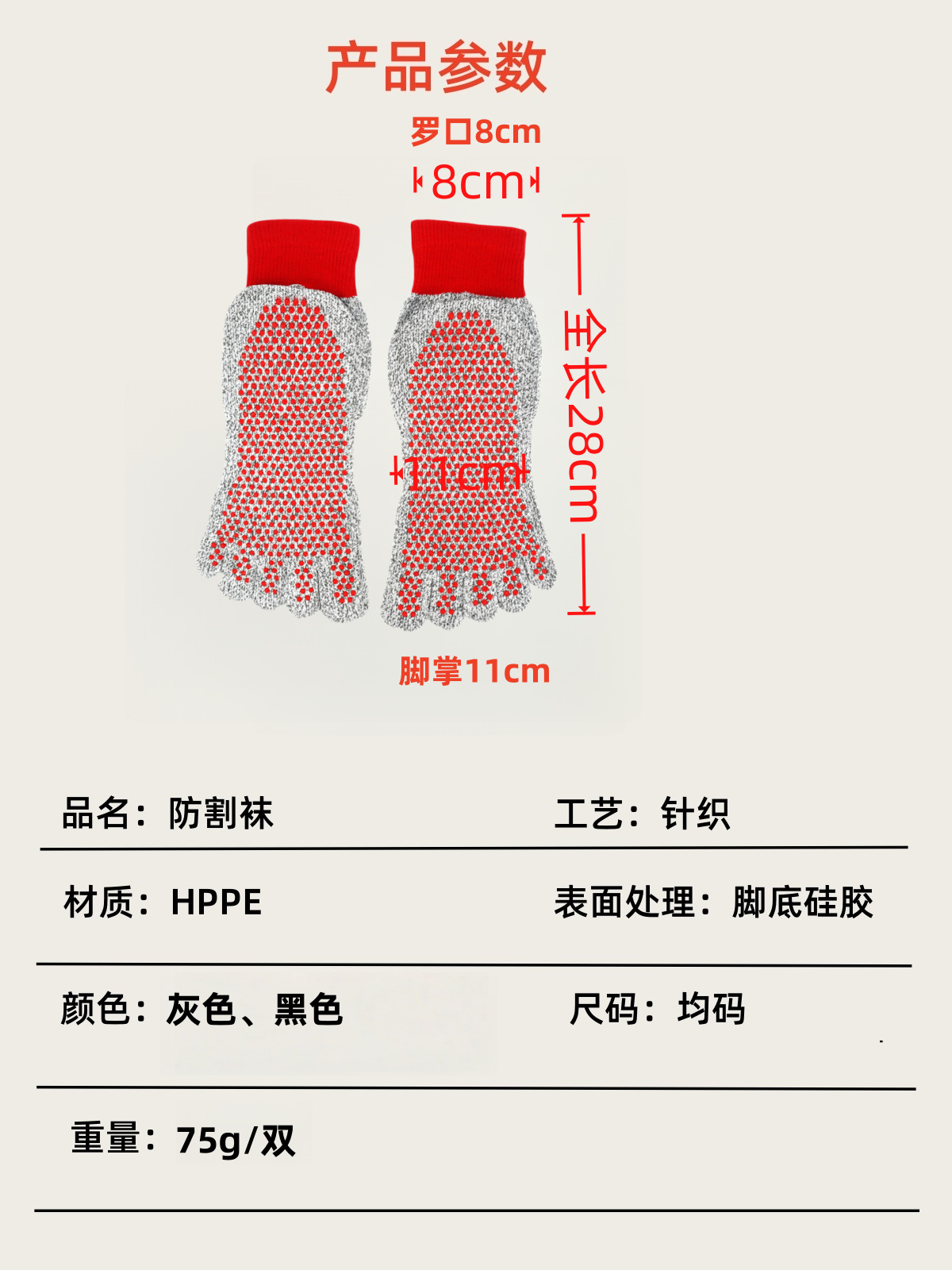 袜子周身高强聚乙烯材质,能有效阻隔刀、剑等利器对脚部的伤害...