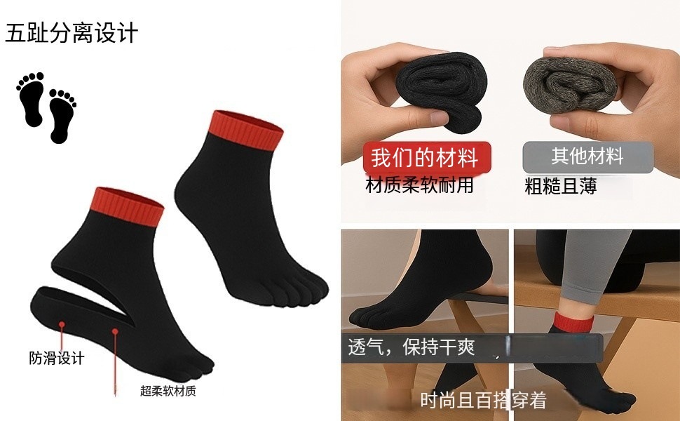 五指分开设计,更符合人体工程学,更舒适,防止脚气......