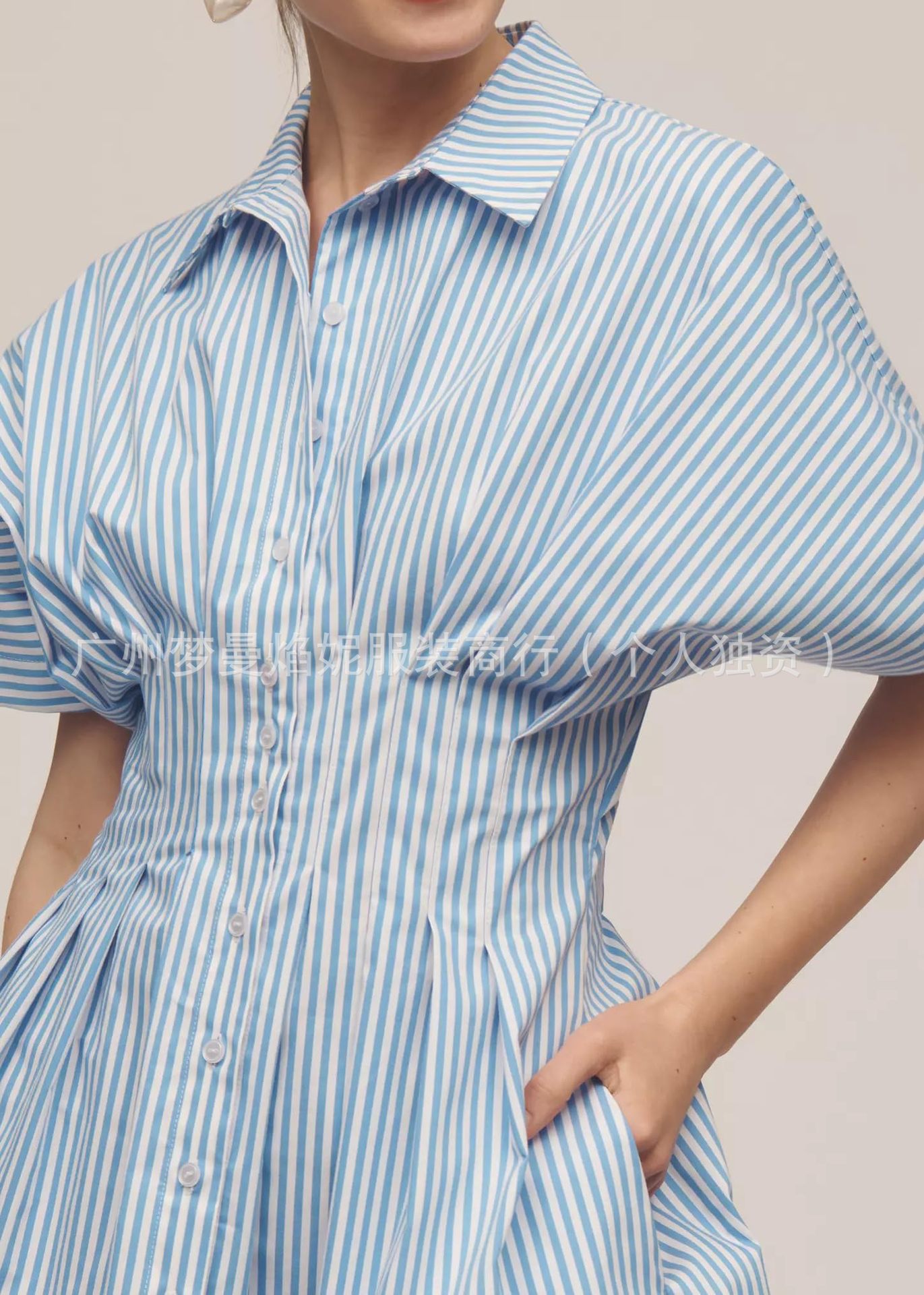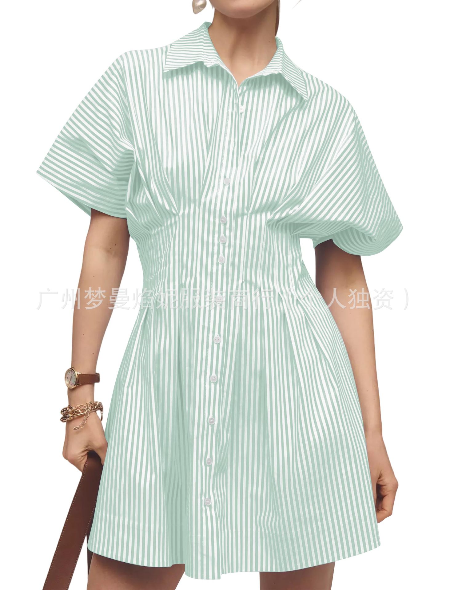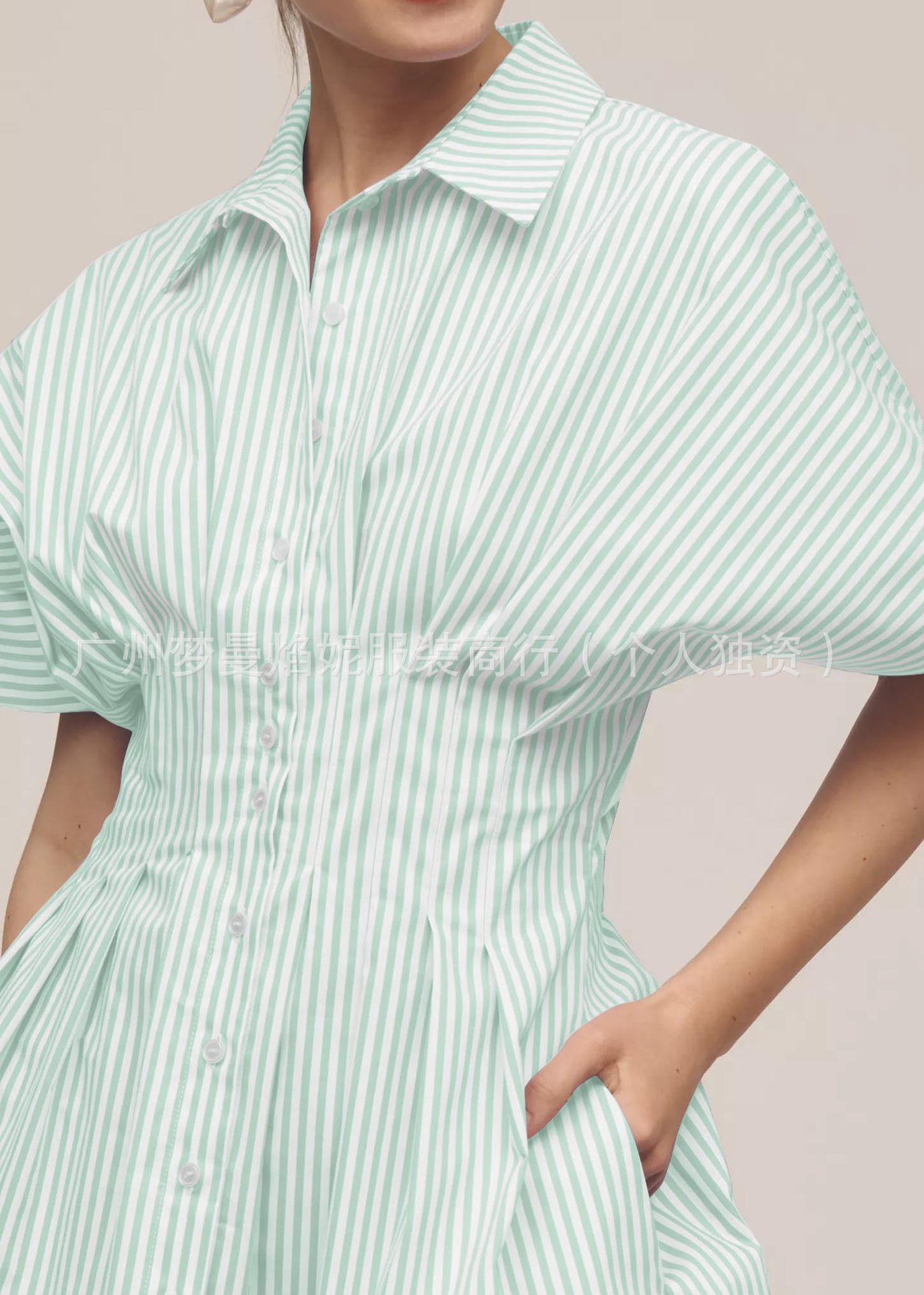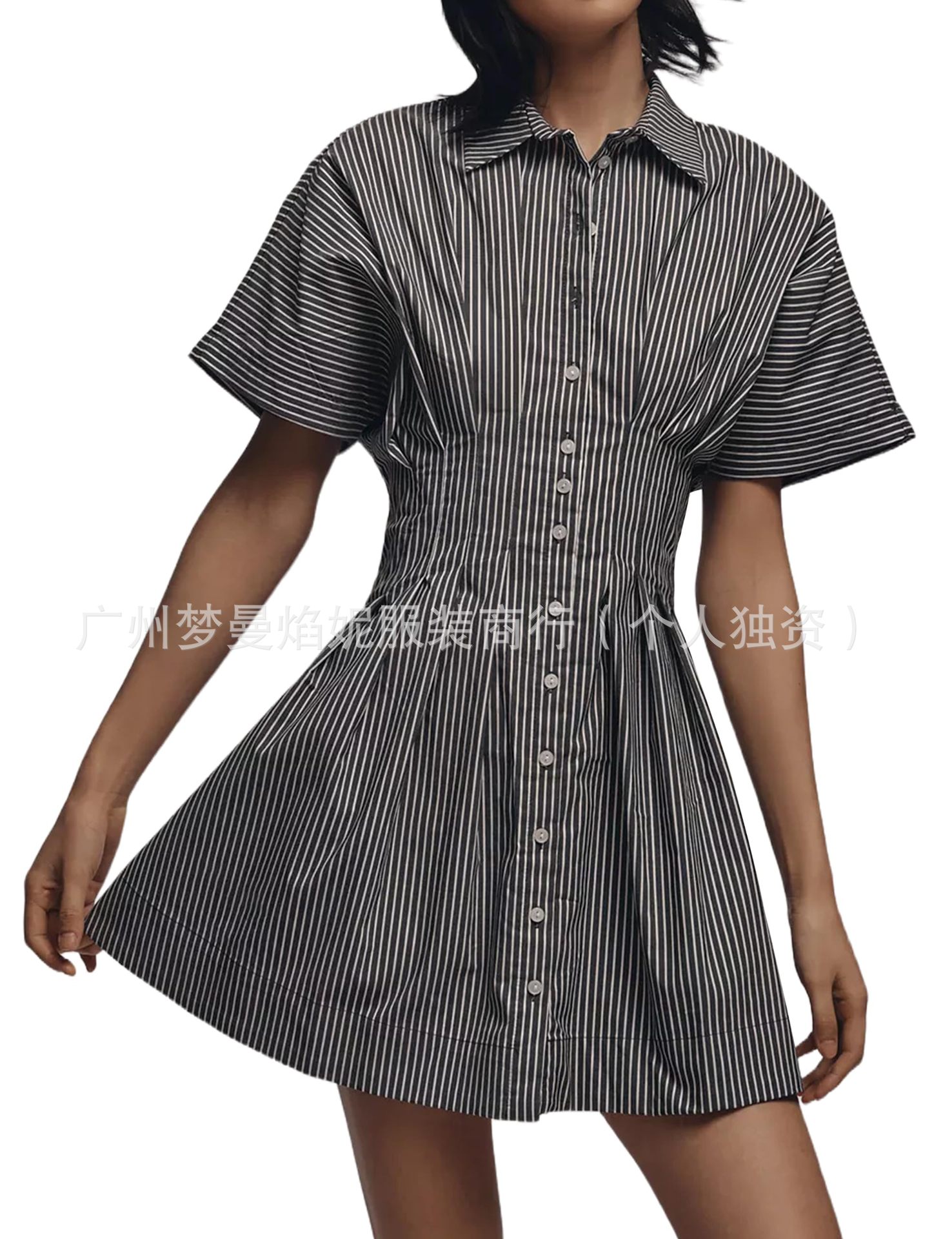 아마존 유럽과 미국 국경 2025 새로운 줄무늬 멀티 버튼 주름 포켓 연령-느슨한 슬림 셔츠 원피스 감소