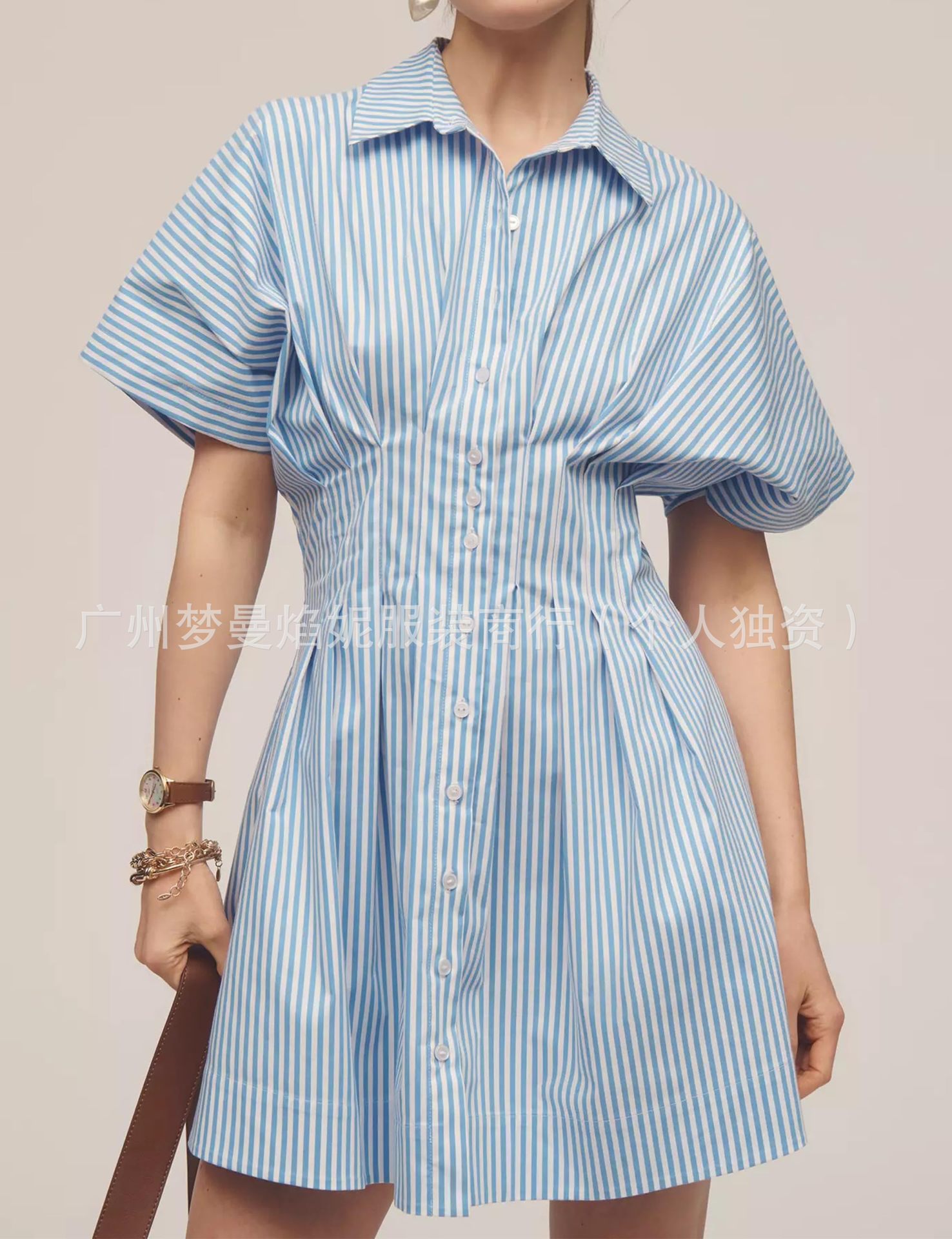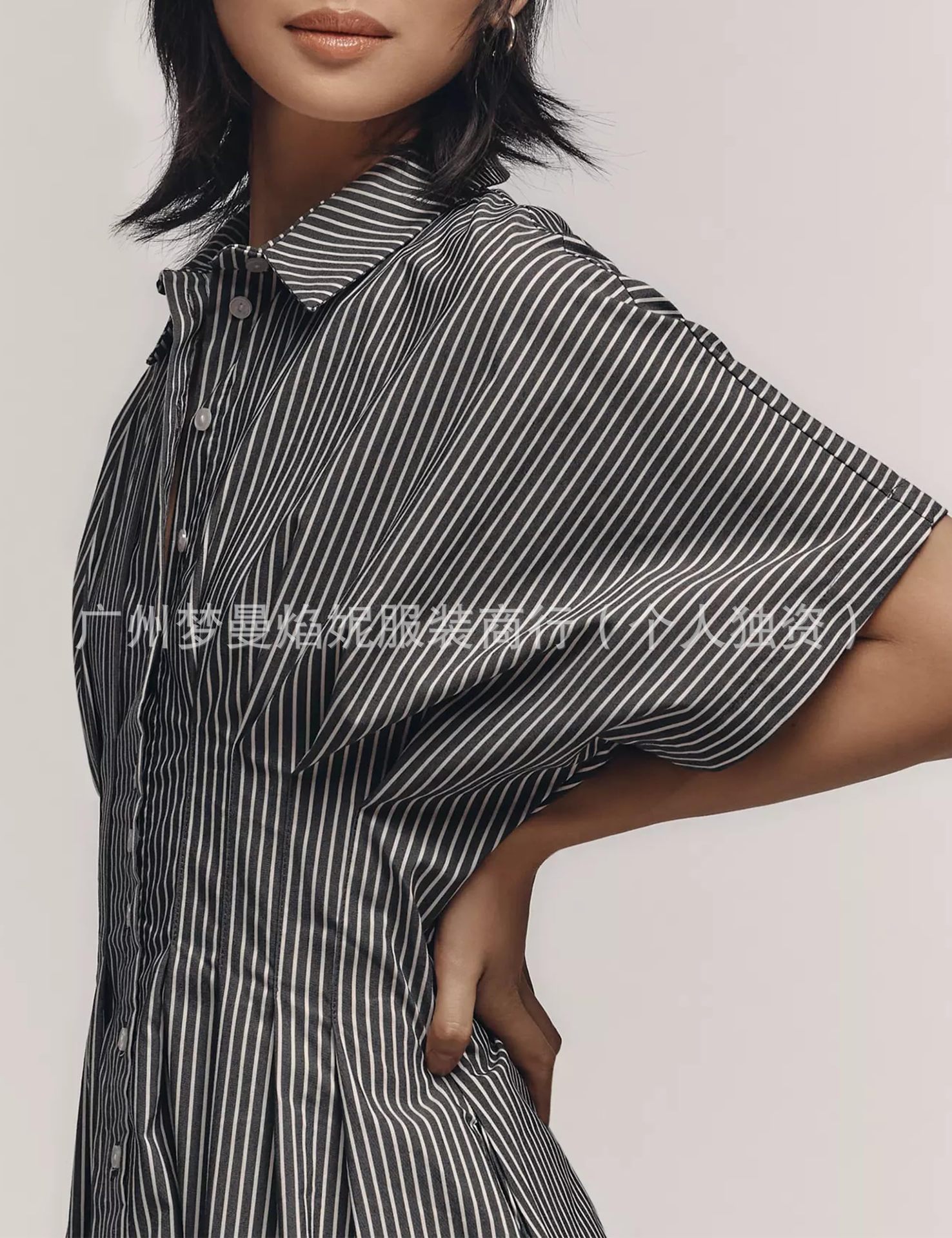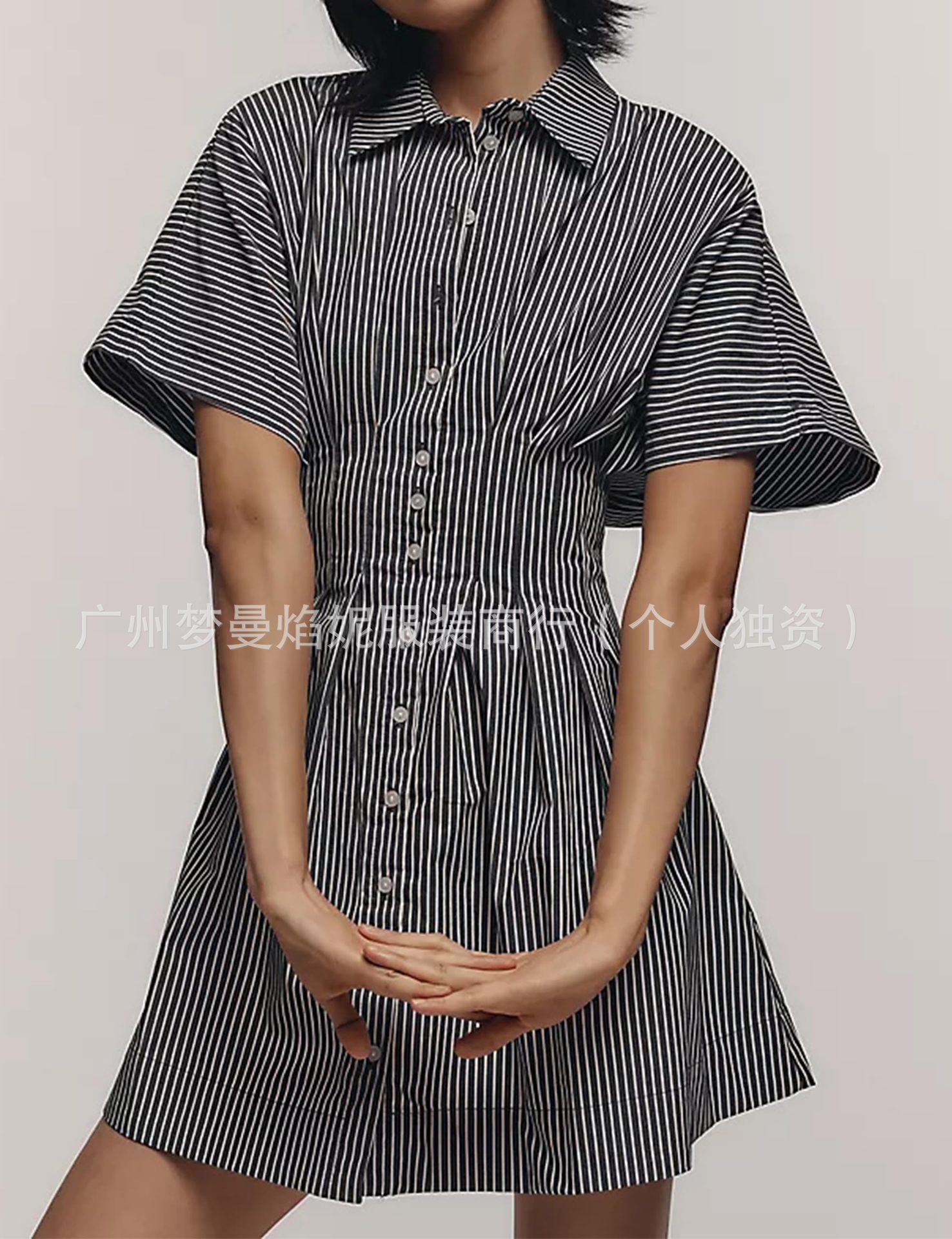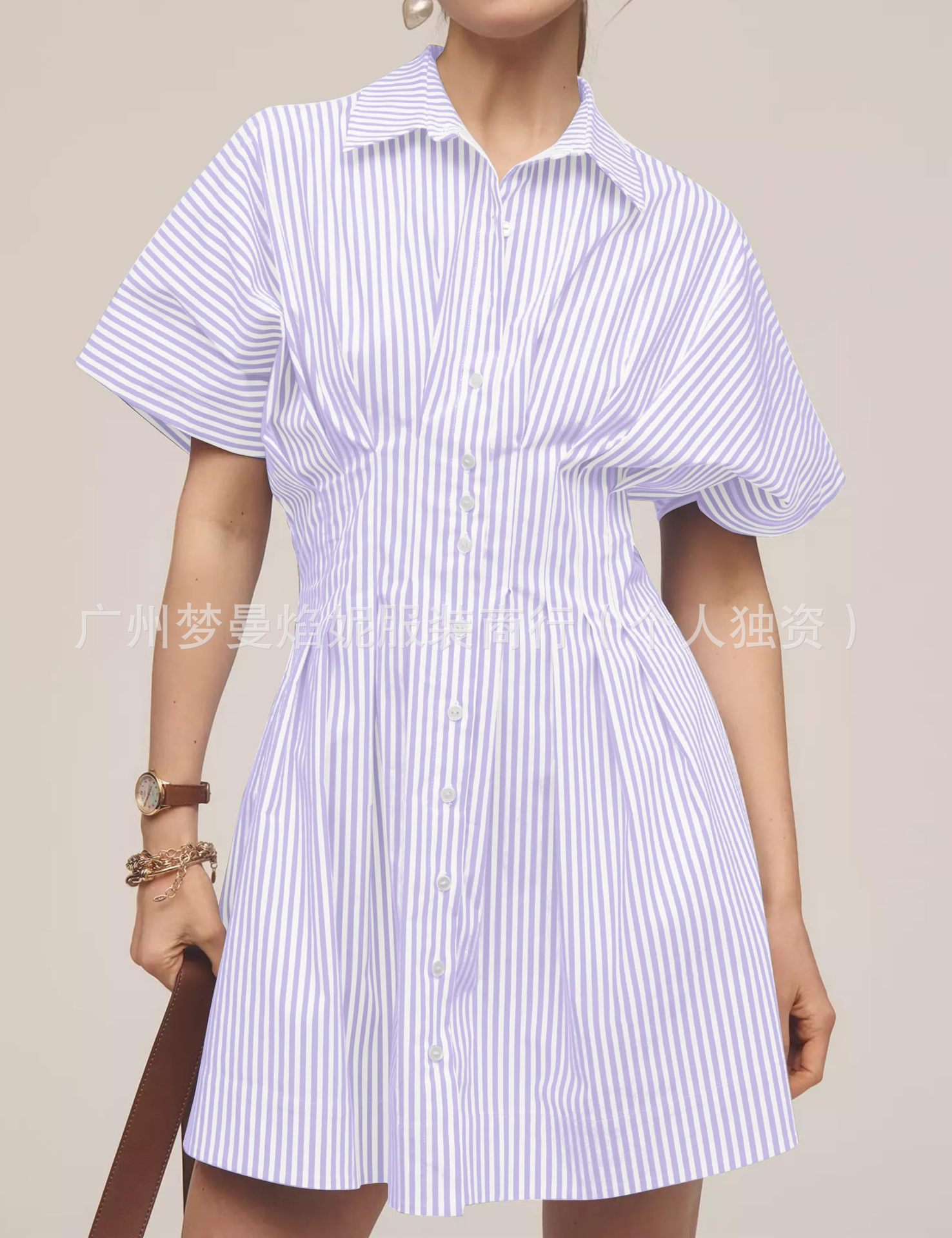 아마존 유럽과 미국 국경 2025 새로운 줄무늬 멀티 버튼 주름 포켓 연령-느슨한 슬림 셔츠 원피스 감소