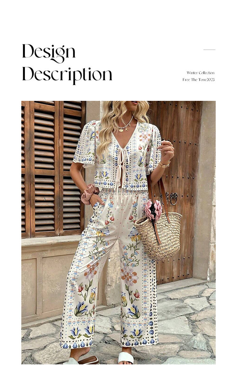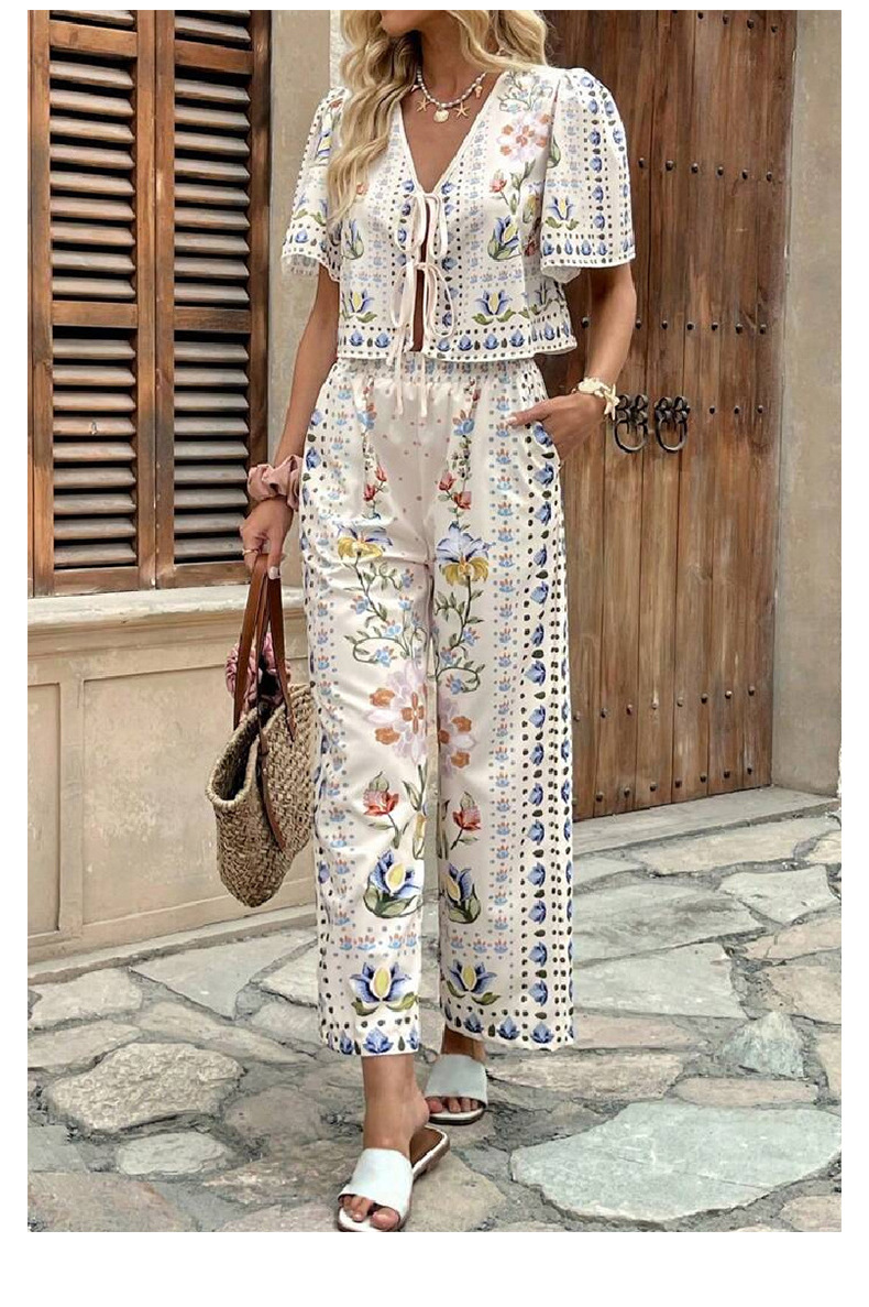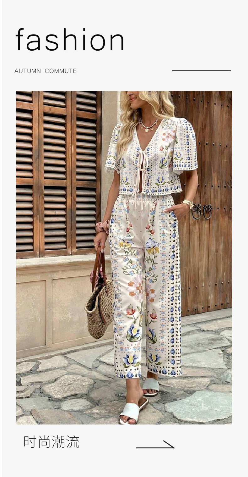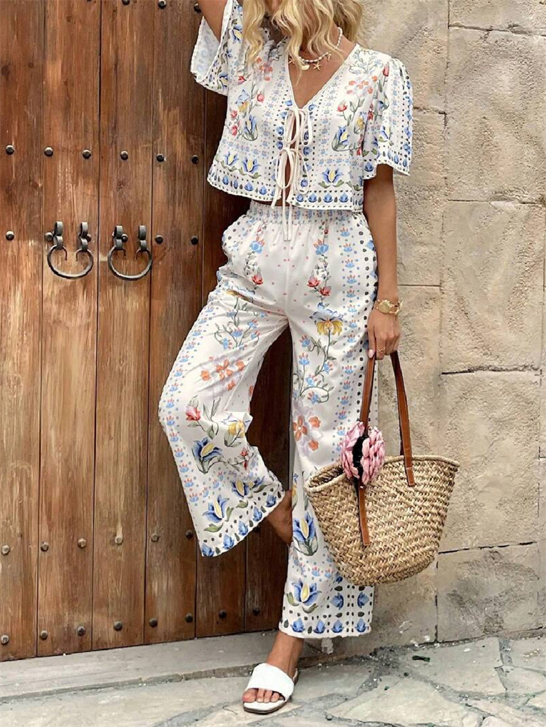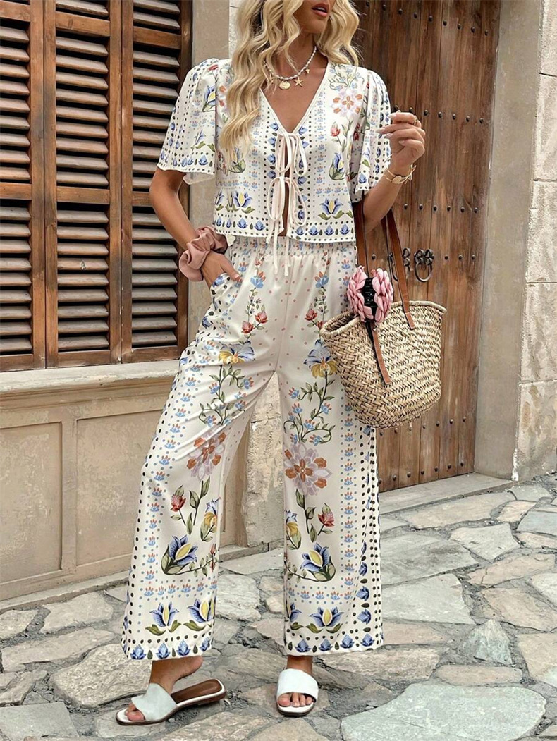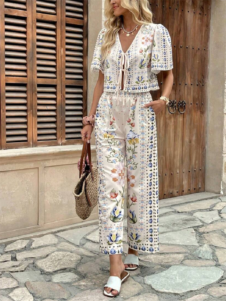 2025 AliExpress 여름 유럽과 미국 여성의 새로운 우아한 우아한 높은 허리 인쇄 캐주얼 패션 세트