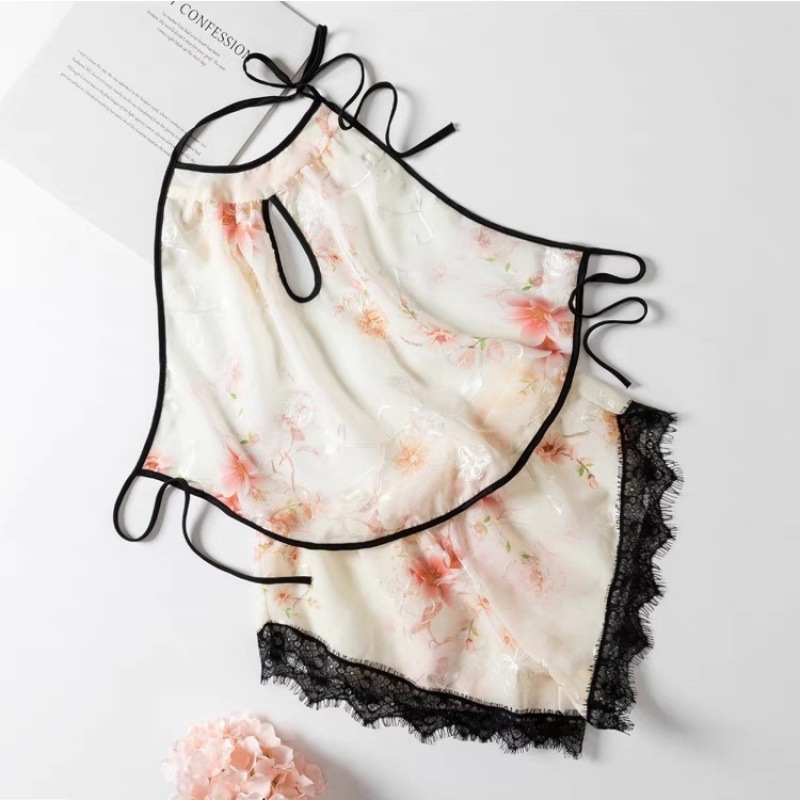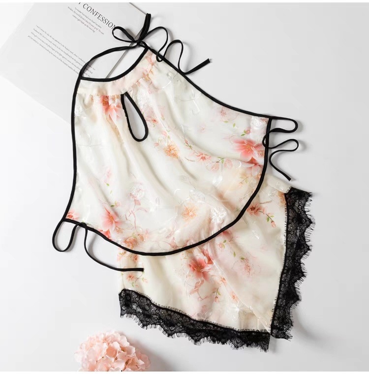 플러스 사이즈 150kg 여름 얼음 실크 Bellyband 잠옷 여성 성인 섹시한 란제리 복고풍 스타일 얇은 Backless Sling Suit스토어 가기